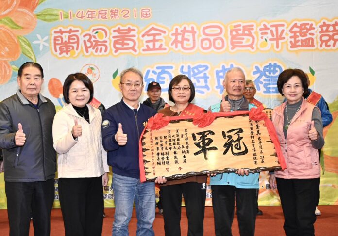 第21屆蘭陽黃金柑品質評鑑競賽,來自員山、礁溪、頭城三大產區共36位果農參賽,經專業評審嚴格評選後,由礁溪鄉農會輔導的蔡玉美榮獲「金柑王」殊榮,員山鄉農會輔導的李讚在獲得亞軍,礁溪鄉農會輔導的游宏俊獲得季軍,9日在宜蘭縣政府縣民大廳頒獎,同步辦理「2025金柑果品創意活動大募集」,展現宜蘭金柑產業在品質管理與品牌建立上的重要成果。