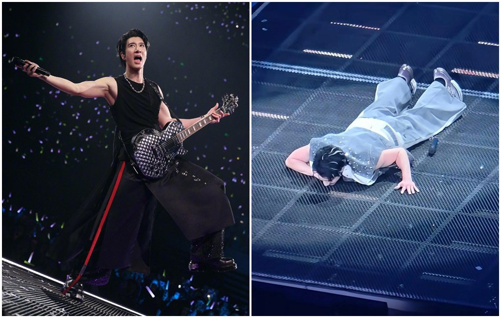 從流出的畫面可見,當天王力宏身穿無袖舞台裝登台演出,上半身是鑲有亮片或鉚釘的背心,下半身則搭配同色系寬鬆落地褲,造型相當有舞台魅力。不料在演唱〈不可能錯過你〉接近尾聲時,他突然臉朝下趴在金屬網格狀的舞台地板上,雙手彎曲撐在頭部兩側,看似正在完成表演動作。
