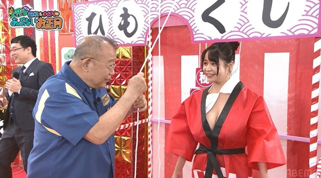 日本過年節目《鶴瓶&NINETY-NINE 有點危險的新年 2026》,其中一個拉AV女優內衣的橋段,在網路上引起熱議。
