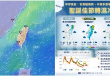 明天東北季風稍會增強,各地及澎湖、金門、馬祖大多為多雲到晴,僅東半部、恆春半島及中部以北山區有局部短暫雨。