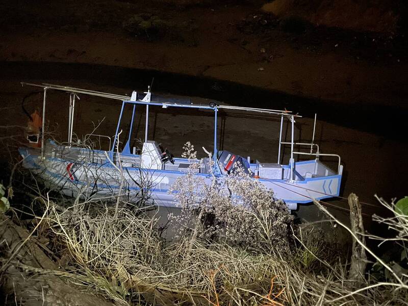 苗栗龍鳳漁港遭竊漁船被棄置在新竹新月漁港附近草叢中。翻攝畫面