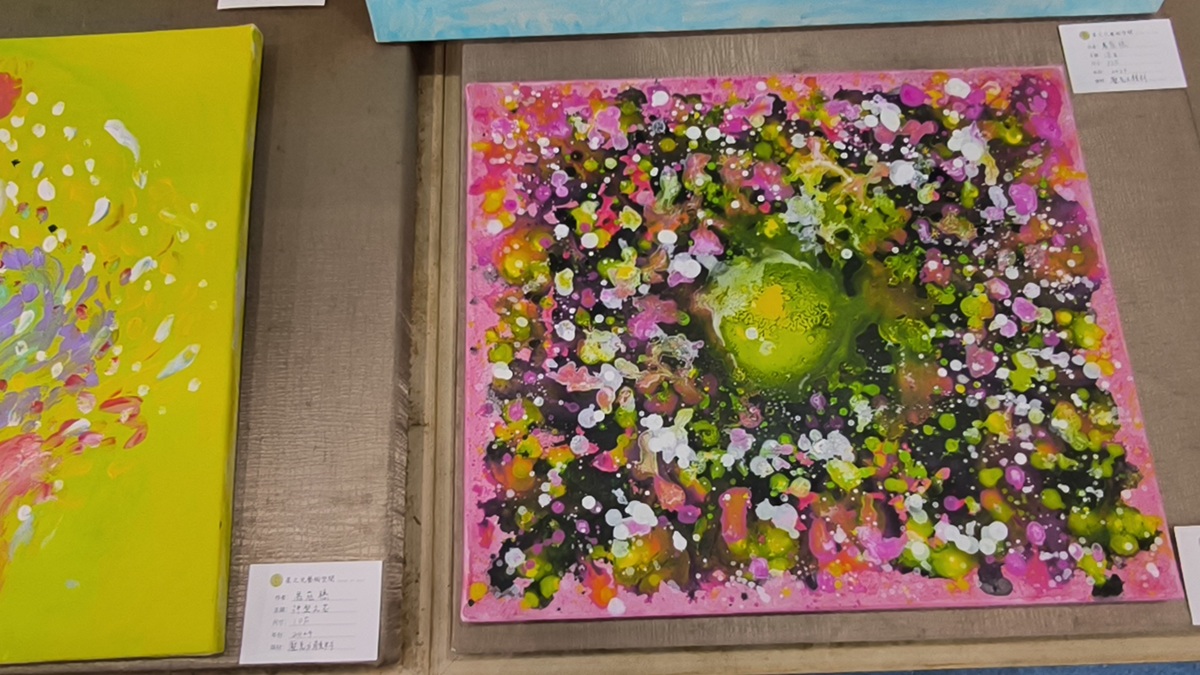 展出者張碧霞為退休教師,自112年起接觸藝術療癒創作,首次以手指點畫方式完成作品,突破過往對「畫不像」的心理限制,開啟自由創作之門。其創作歷程結合內在覺察與情感釋放,在作畫過程中體驗到自在、流動與喜悅,並將創作視為一段與內在神聖意識相遇的旅程。短短三年間,已陸續參與多場個展與聯展,累積豐富展覽能量,本次於鹿港藝文中心的展出,為張碧霞藝術創作之整體呈現。