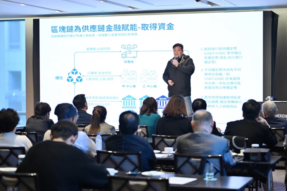 ▲跨鏈科技業務經理鄭鈞中於 CHAINSS 跨鏈科技 2026 說明會-台北場中進行專題分享,介紹跨鏈公司的技術方向與產業應用。(圖/業者提供)