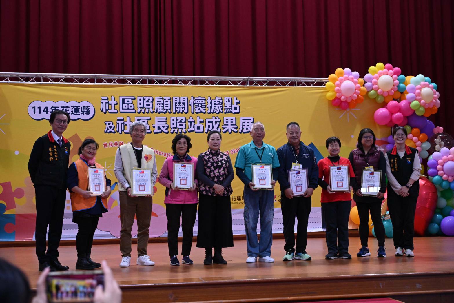 為展現花蓮縣推動社區照顧關懷據點及社區長照站(朝陽站)多年深耕社區、陪伴長者的服務成果,花蓮縣政府於今(16)日上午在花蓮縣立中正體育館舉辦「114年花蓮縣社區照顧關懷據點及社區長照站成果展」,縣府全方位推動各項社福政策有成,全縣長照覆蓋超過100%,全國第一。