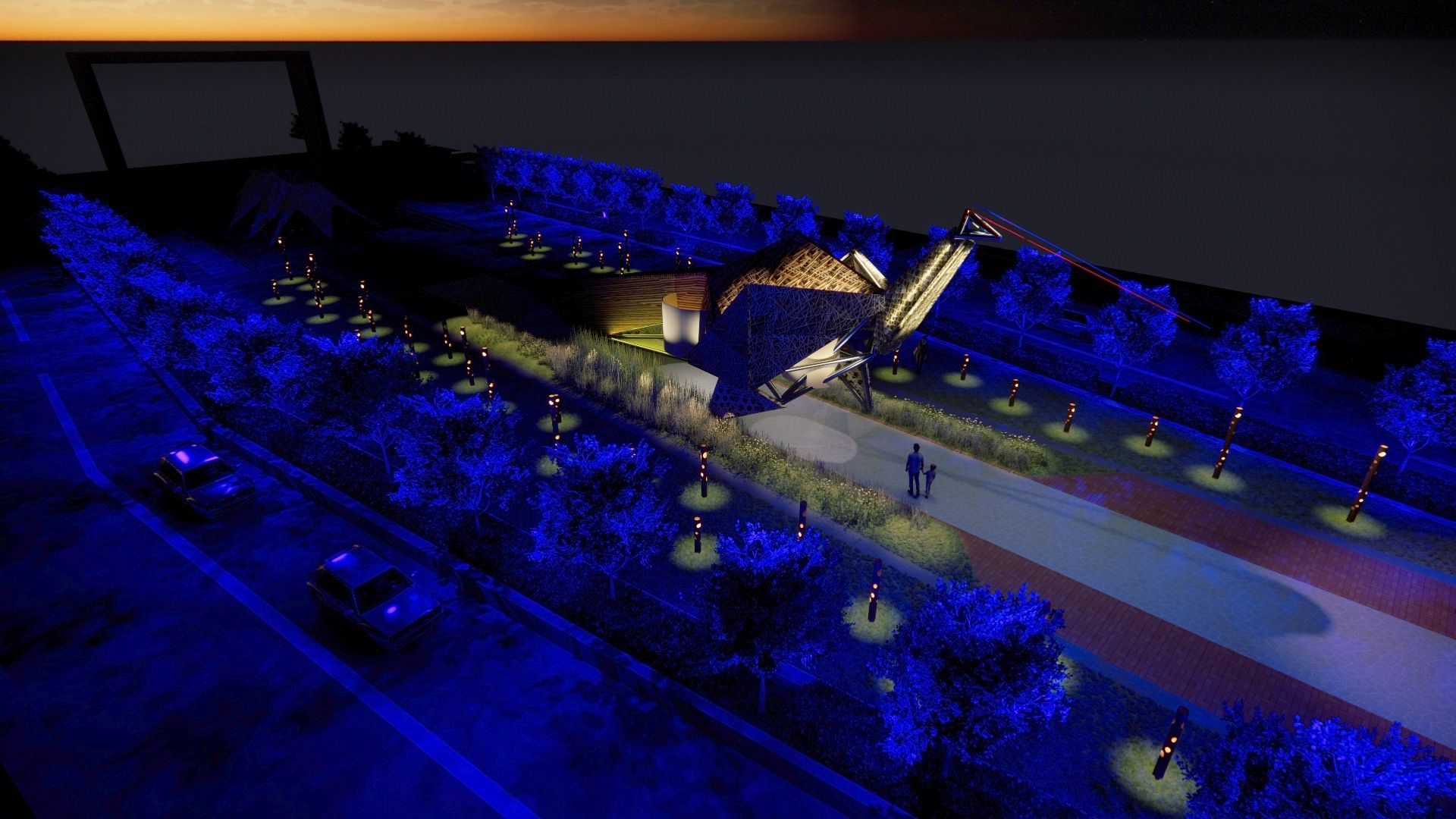 藍腹鷴主燈為長約22公尺、高約11公尺、寬約7公尺的大型裝置,為利於工藝製作與運輸施作,整體結構先行拆分為頭部、頸部、身體、翅膀、尾部及腳部等構件,後續再於社規師燈區現場進行組裝與整合,逐步完成具備工藝細節與整體視覺張力的光影作品。