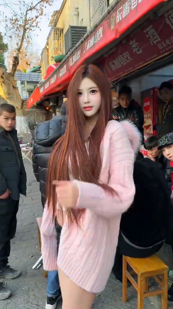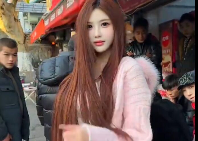 一段影片在網路上瘋傳,一名疑為中國女網紅的女子,身穿粉紅色長版連帽針織衫外套,隨後一隻手輕輕拉下連帽衫上讓她回頭,女子露出略顯驚訝的表情,隨即展現甜美的微笑並輕輕撥弄頭髮。