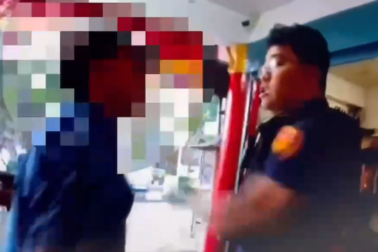 醉漢(左)對警員叫罵嗆聲。翻攝畫面