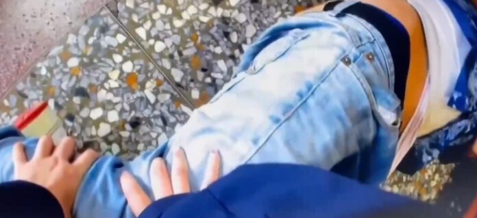 到宮廟內鬧事的醉被警員壓制。翻攝畫面