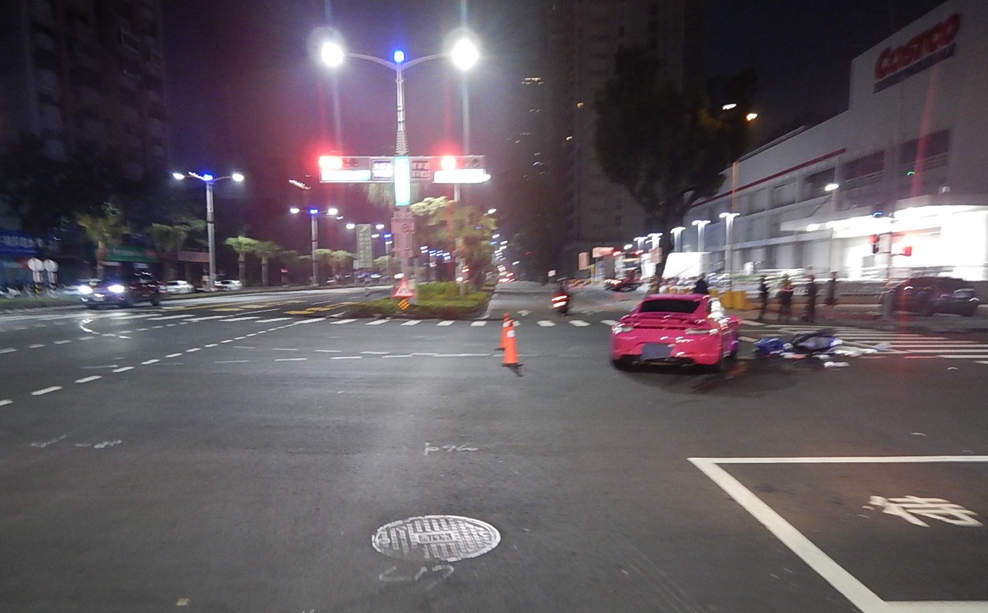 卡比保時捷闖禍了!高雄路口撞倒機車 粉紅跑車太吸睛反成焦點.(圖/警方提供)