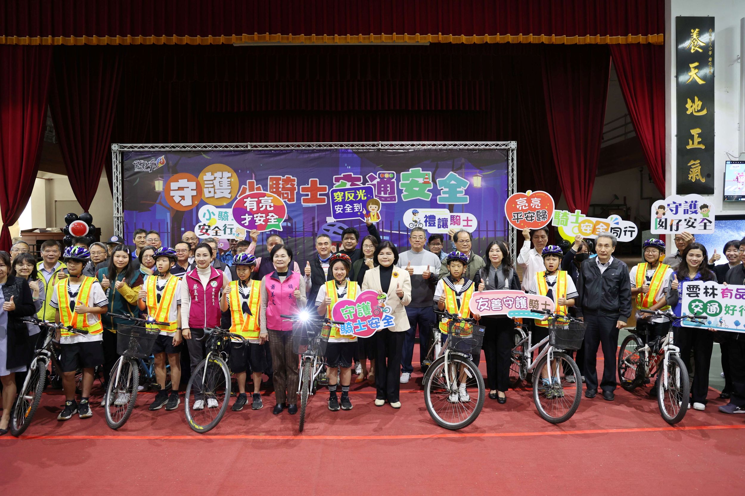 教育處長邱孝文指出,守護孩子交通安全是縣府最重要事情,更是責無旁貸。雲林縣每位學生自行車除有前後車燈、反光條、配戴安全帽及LED反光背心外,亦結合校園交通安全課程,讓學生透過情境示範與影片教材,了解夜間行車的風險與正確防護方式,透過「看得見、才安全」的概念,讓學生在日常通行中更具備自我保護能力。