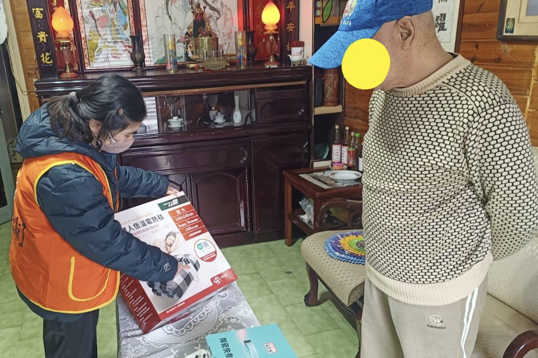 大寒寒流接連報到,為守護獨居長輩與弱勢家庭的健康與生活安全,瑞芳區公所秉持「提前關懷、主動守護」的理念,近期運用聖祖壇九龍太子慈心會及台北聖城事業股份有限公司之善心捐款,添購 72 條恆溫電熱毯,並結合台北大宮國際有限公司提供的 14,400 片暖暖包,由公所志工於關懷訪視時親自送到長輩家中,讓長輩在冷氣團來襲之際,不僅身體保暖,心中也感受到被關心的溫暖。