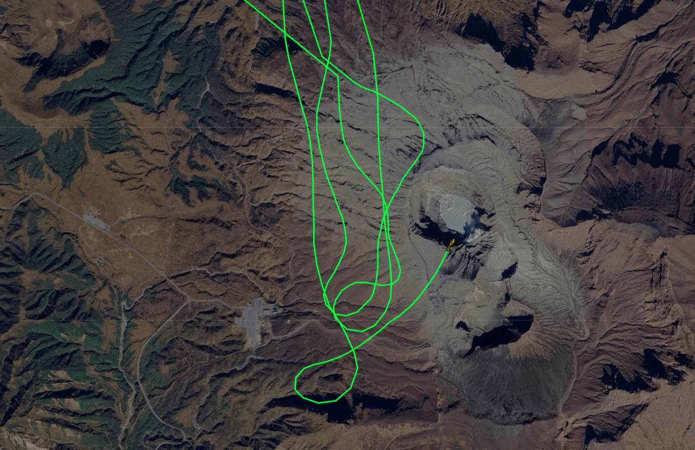 根據航班追蹤網站Flightradar24資訊,該機起飛後沿路線朝阿蘇中岳方向飛行,最後一次出現訊號約在10:58,位置接近中岳第一火山口附近,之後訊號中斷。日方推測,這段時間與直升機失聯的時間點相吻合,相關飛行軌跡也成為搜救判斷的重要參考。