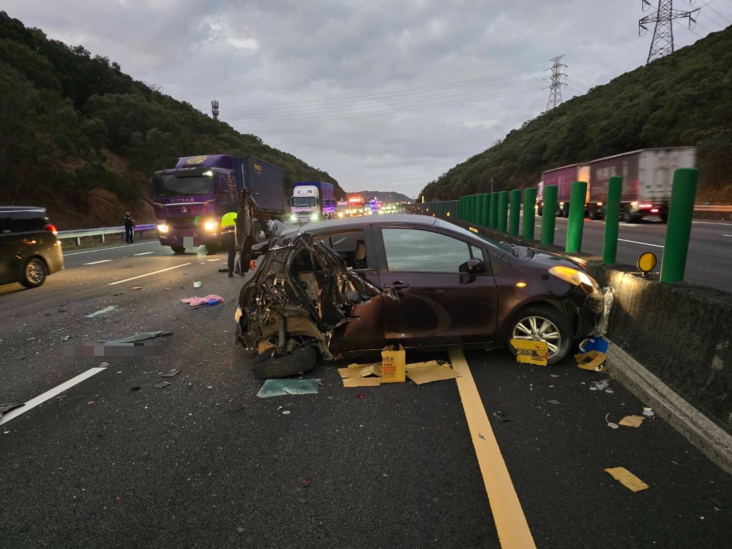 【Lai傳媒、記者爆料網/周庭慶/台中報導】今(21)日清晨6點多,國道3號北上166.3K靠近大甲交流道路段發生聯結車與小客車事故,佔用外側及中側車道,貨物散落一地,車流回堵至中港系統,目前國道警方和高公局人員還在現場處理中,初步了解是兩車相撞無人受傷。
