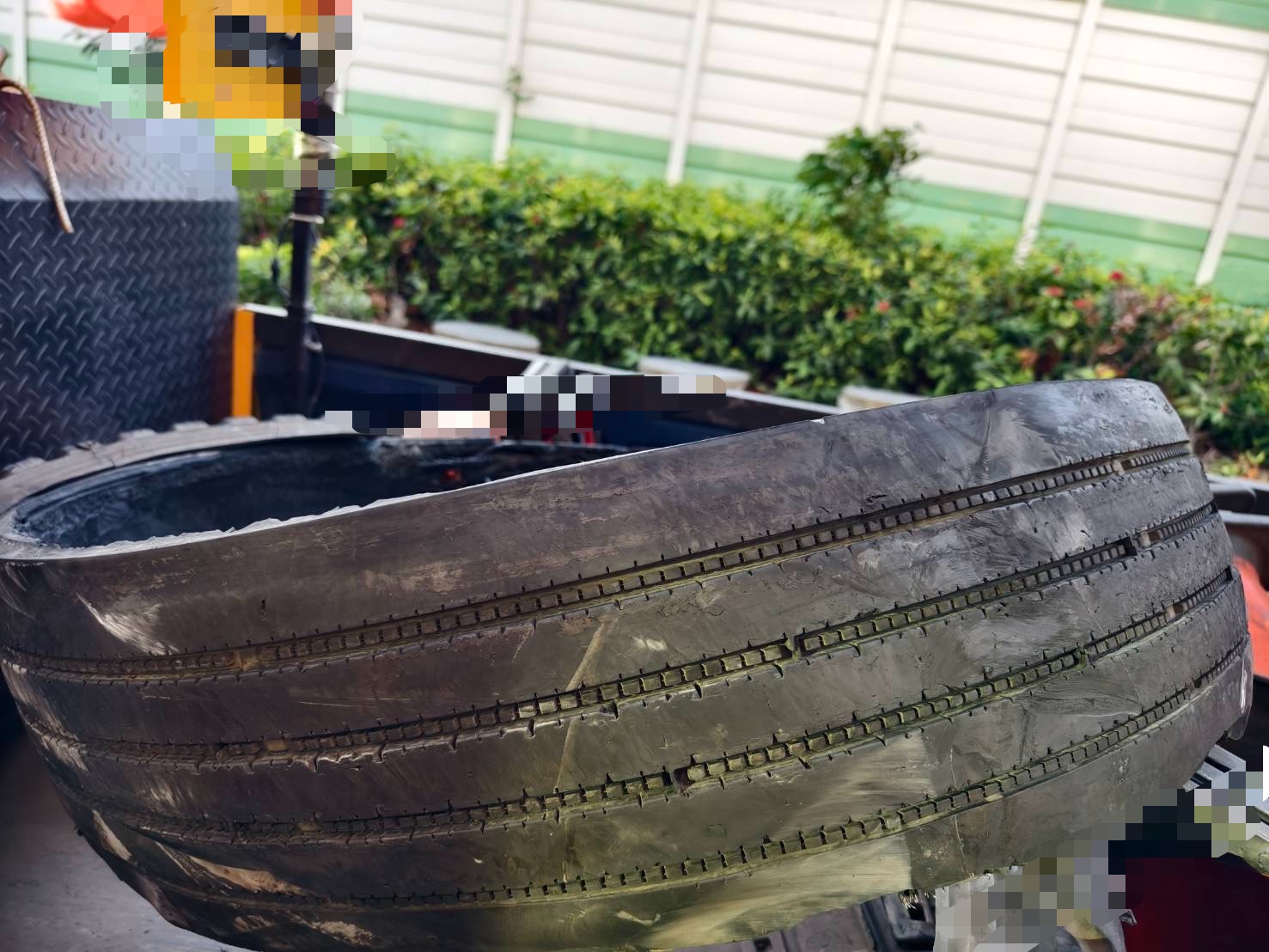掉落的胎皮。翻攝畫面
