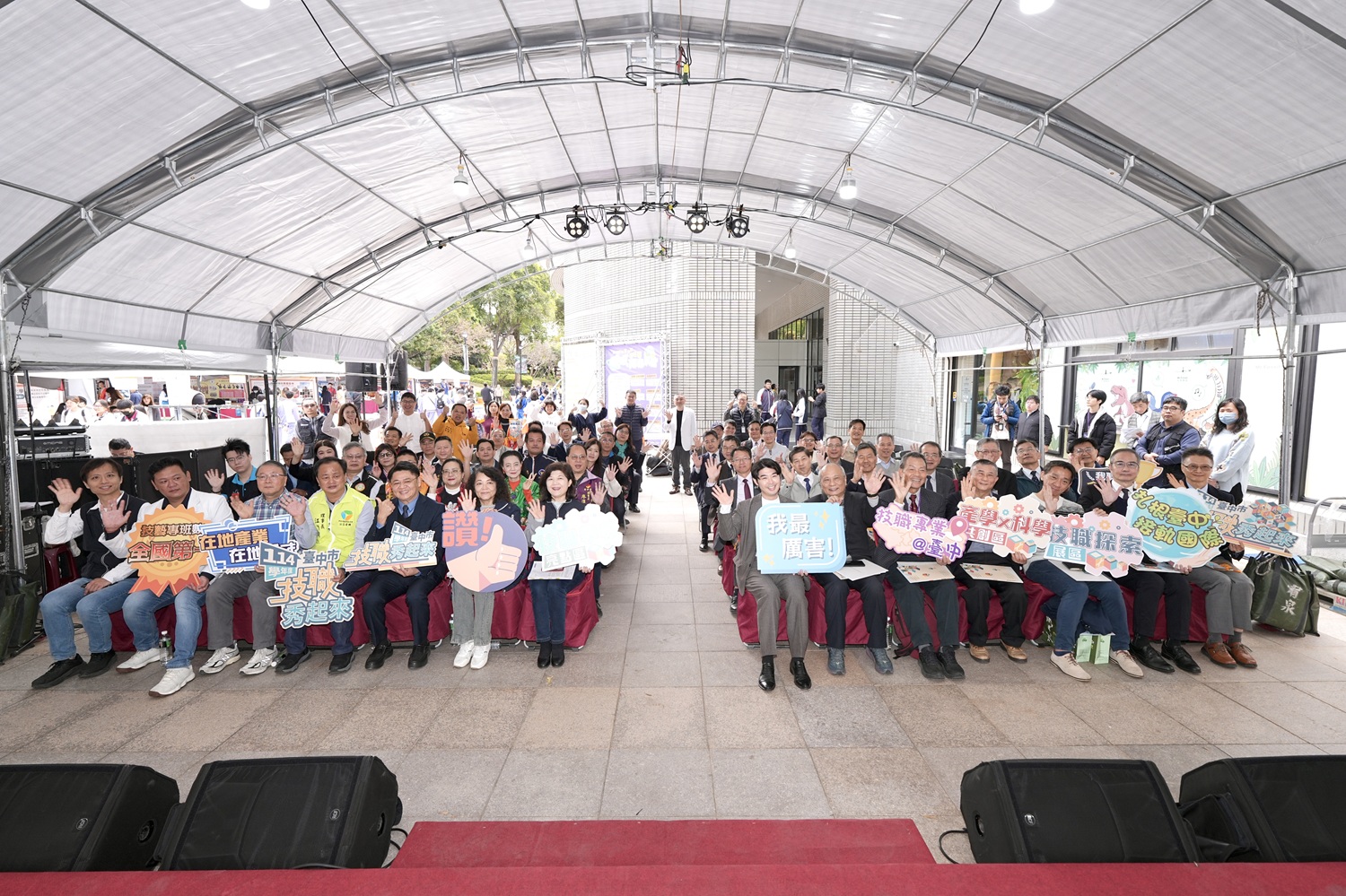 ▲產官學界共襄盛舉,與會貴賓於開幕典禮開心合影。( 圖 臺中市政府教育局提供 )