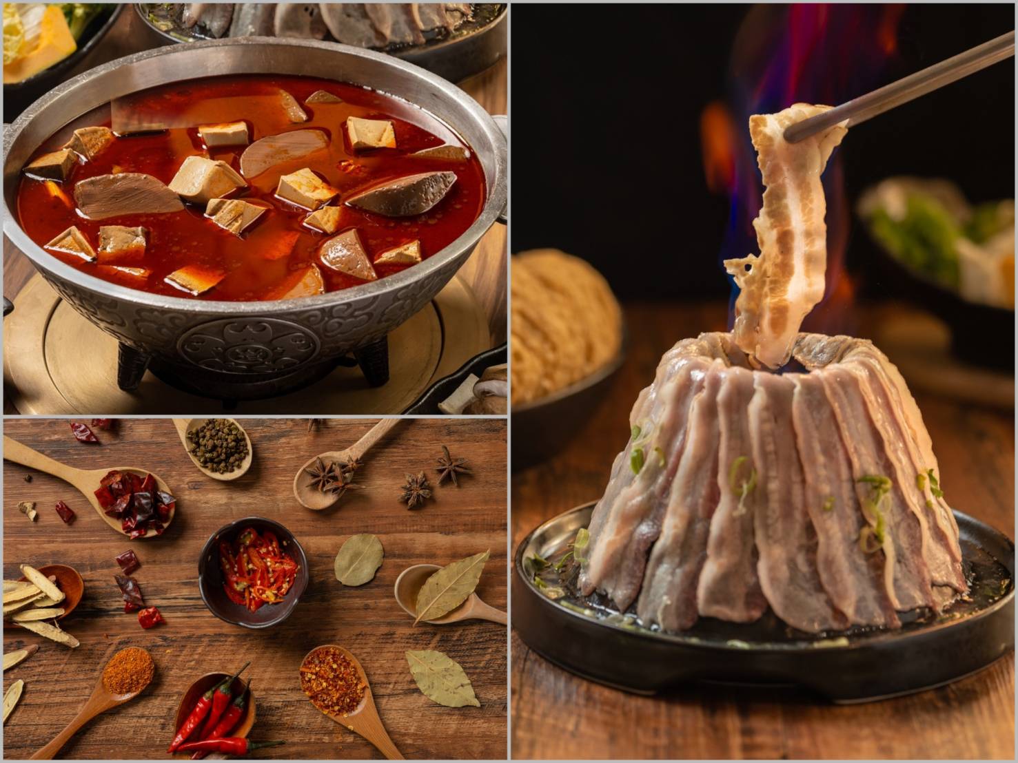 ▲漢方麻辣湯搭招牌火焰炙燒豬 打造沉浸式鍋物饗宴。( 圖 岩漿火鍋提供 )