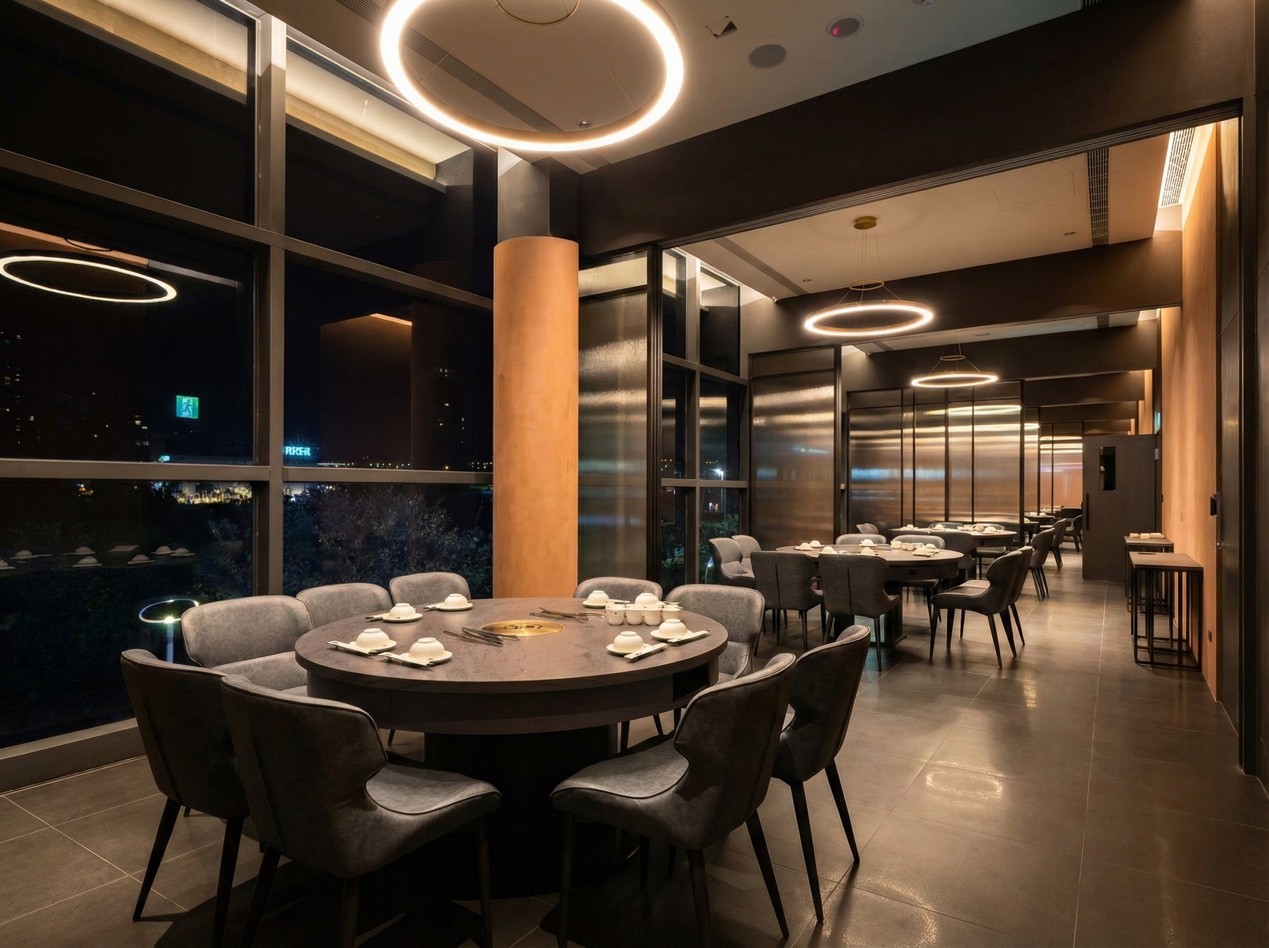 台中商務宴客與高端聚餐首選,岩漿火鍋台中敦富店佔地達345坪,規劃292個座位,並設有可容納80人的獨立包廂,滿足企業尾牙、部門聚餐與私人宴會等多元需求。空間設計以現代時尚為主軸,深色系建材搭配溫潤藝術燈光,透過石材紋理與光影層次,呼應「岩漿」意象,營造低調而沈穩的奢華氛圍。地點緊鄰台中好市多,距北屯捷運總站僅步行2分鐘,並貼心提供免費停車場,大幅降低大型聚餐的交通與停車負擔。