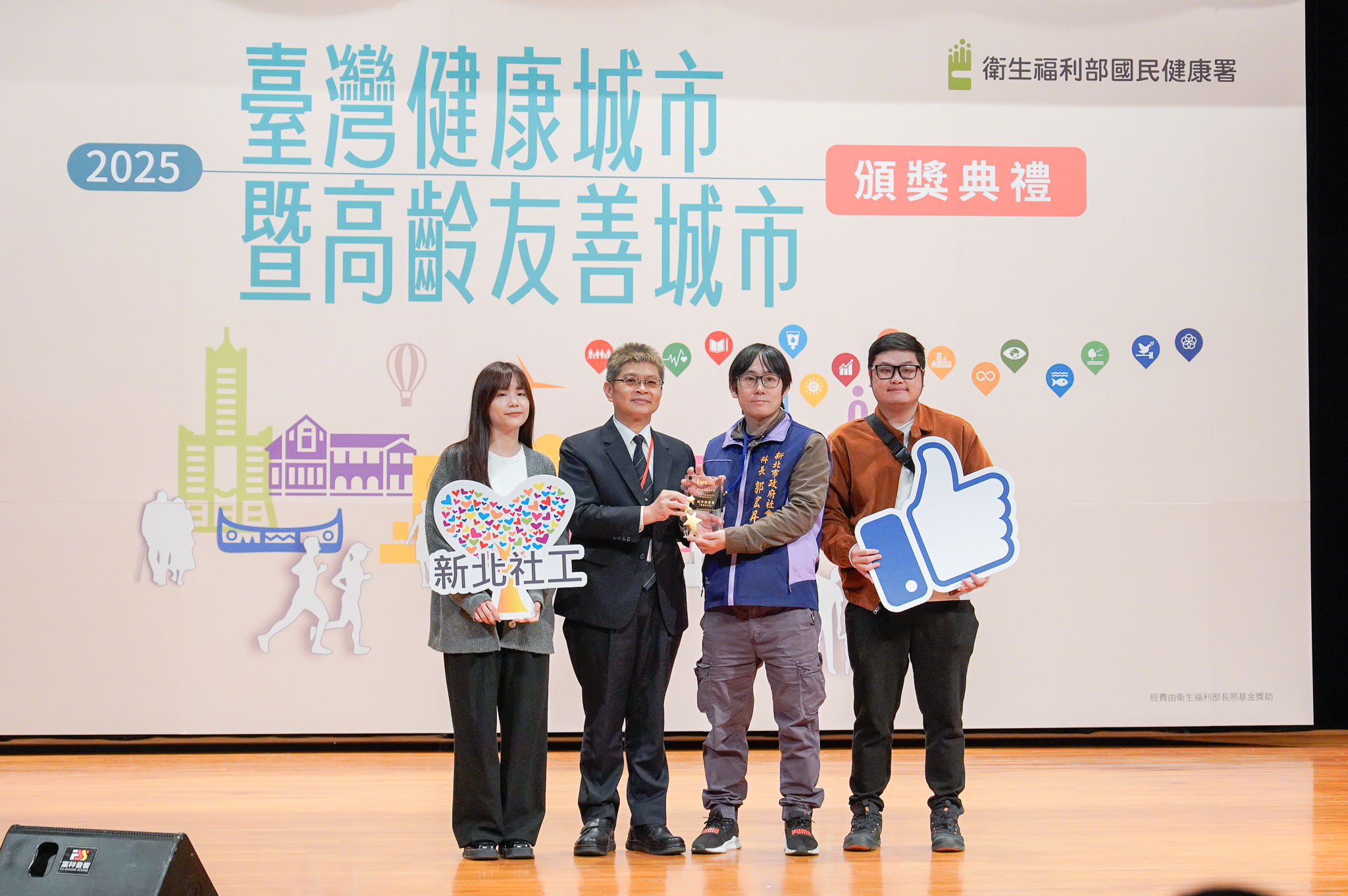 新北市社會局推動多元社會福利政策成果獲肯定,榮獲114年衛福部「健康城市暨高齡友善城市獎」,一舉拿下4項大獎及1項佳作。其中,銀髮俱樂部先修班榮獲高齡友善城市類「共老獎」及「海報獎金獎」,惜食推廣計畫獲健康城市類「綠色城市獎」,街友服務獲「城市夥伴獎」,新北育兒APP則獲健康城市類「健康平等獎佳作」。