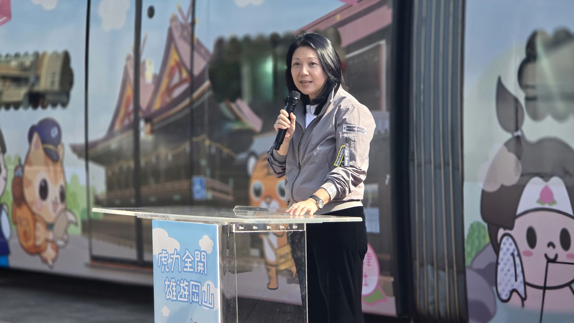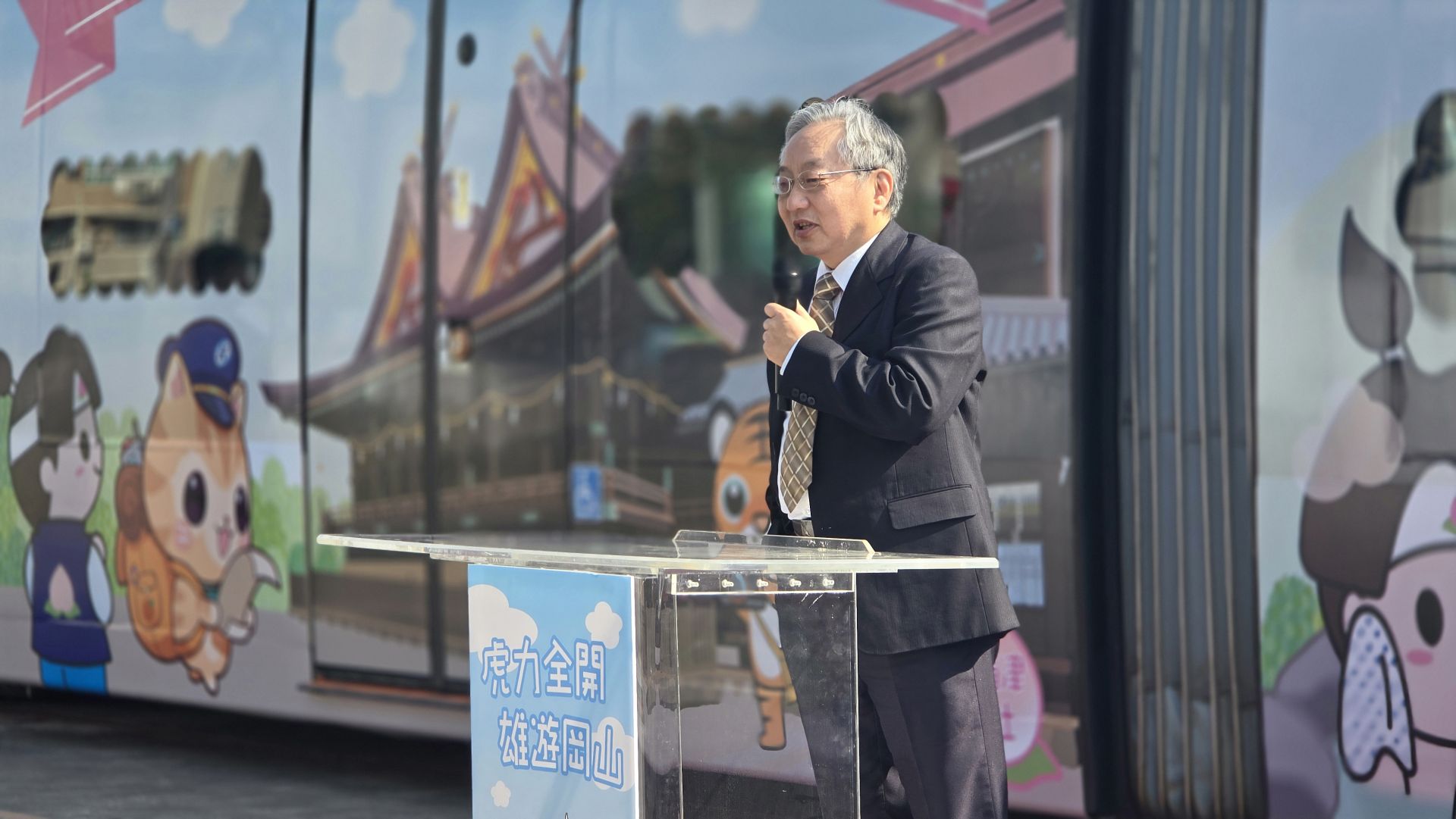 在台灣虎航董事長黃世惠,以及日本岡山縣副知事尾﨑祐子等貴賓共同見證下,聯名高雄彩繪輕軌列車正式亮相,也象徵本次台日跨國觀光合作全面啟動。