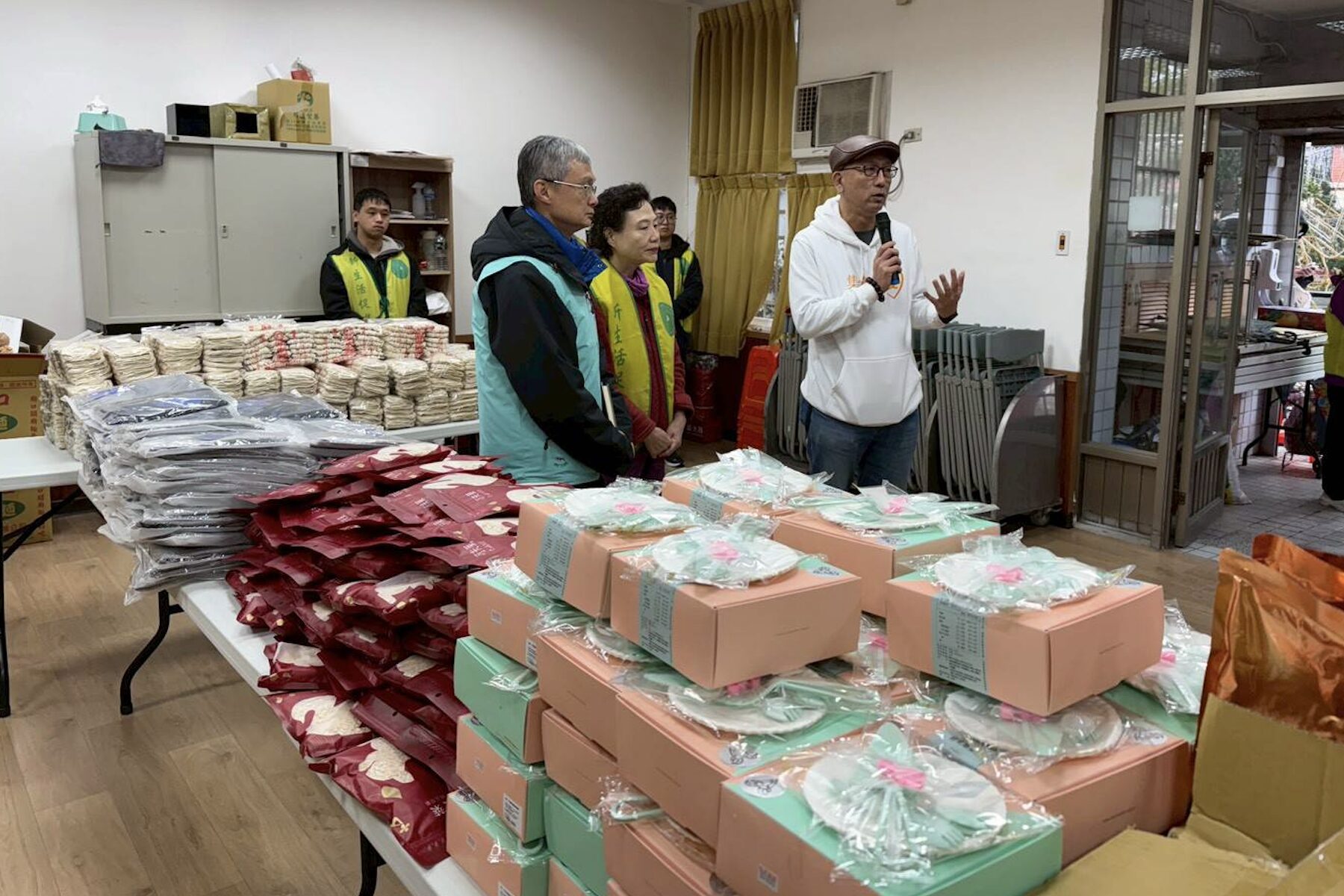 NPO channel公益平台結合LINE購物與各大網路賣場和7-ELEVEN門市,為弱勢家庭「集食送愛」,於21日在三芝埔頭里活動中心,致贈電鍋、電熱毯和一箱年菜給低收入戶,由平台創辦人張幼霖和三芝區長李天民及新生活促進會創辦人羅素如等共同代表致贈,希望讓弱勢家庭過個暖暖的農曆年節。