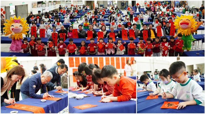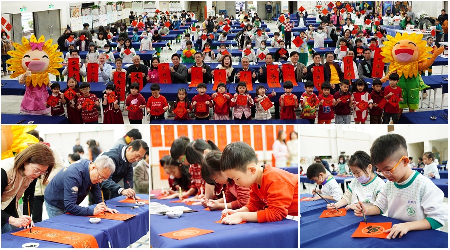 宜蘭國小師生與貴賓揮毫寫春聯。(圖/黃億達攝)