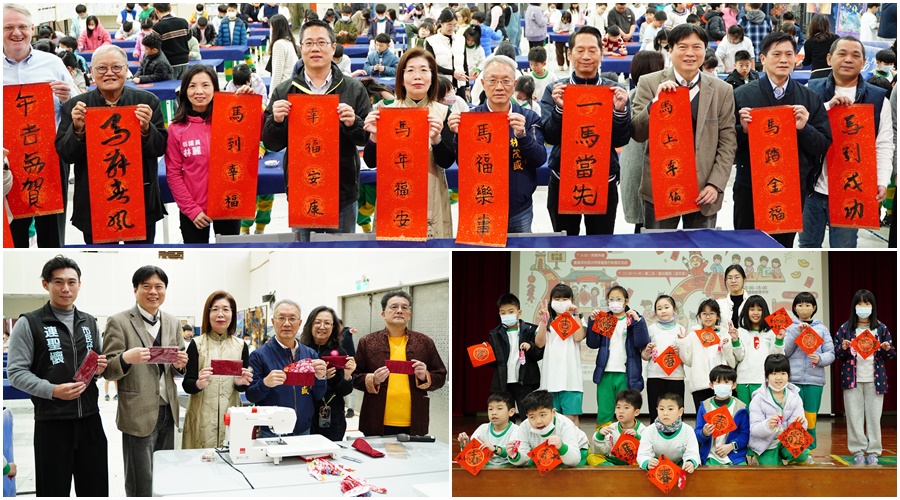 宜蘭國小1月22日舉辦藝術家駐校暨書法特色學校成果展,將馬年生肖意象與祝福寓意融入「書法藝術」與「手作工藝」創作,校長楊顯欽率同全校師生與貴賓當場揮毫寫春聯,還特別以縫紉機縫製新春書籤卡,現場洋溢年節的喜氣,為馬年寫出美好的開始。