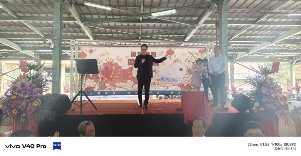 【記者戴英薇/內埔報導】 迎接農曆春節送禮旺季,屏東酒廠於1月23日舉辦「愛鯉舞吉新品發表會暨尾牙聯歡活動」,邀請各界貴賓與員工共襄盛舉,並正式推出兩款全新特級紅高粱酒禮盒「玉山台灣特級紅高粱酒禮盒-愛鯉舞吉」及「玉山台灣紅高粱16年陳高禮盒-三太子好運旺」,成為年節市場矚目焦點。