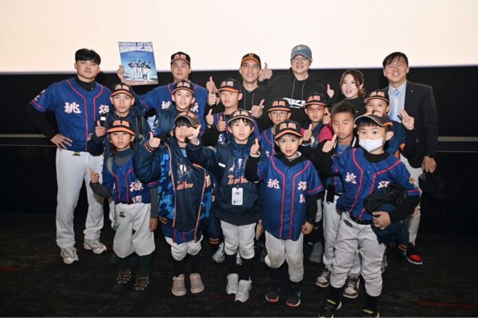 ▲(上排右一)中山扶輪社社長朱易凡透過「中山社小太陽計畫」邀請超過百位由沐新扶輪社贊助的桃源國小棒球隊小選手共同觀賞國片《冠軍之路》。(圖/中山扶輪社提供)