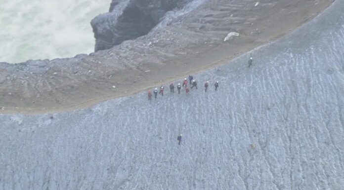 從現場照片可以看到,直升機機體散落在火口內,機門和尾翼部分都清楚可見,顯示撞擊相當嚴重。日本警消單位這4天持續進行搜救,但火口內的環境實在太惡劣,不僅有強風吹襲,還有不斷噴發的水蒸氣和火山氣體,讓搜救人員根本無法下降到火口內接近機體,只能在外圍持續監控。