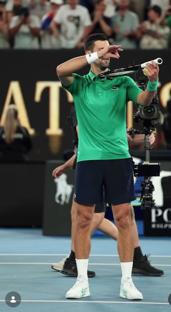 賽後喬科維奇開心地在場中做出招牌「拉小提琴」動作慶祝,這個歷史性的一勝真的值得好好紀念!37歲的他依然寶刀未老,繼續朝著第11座澳網冠軍邁進。