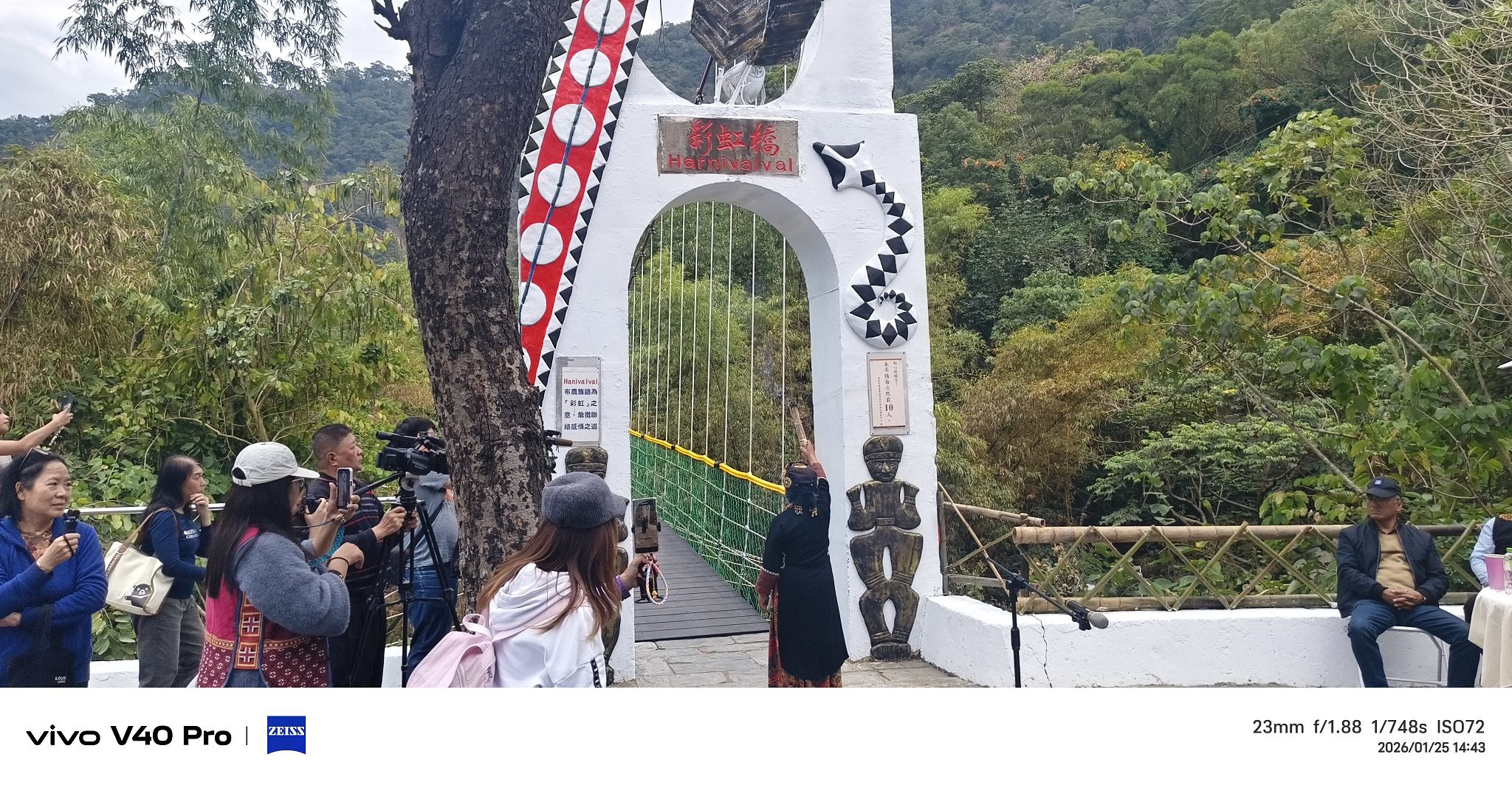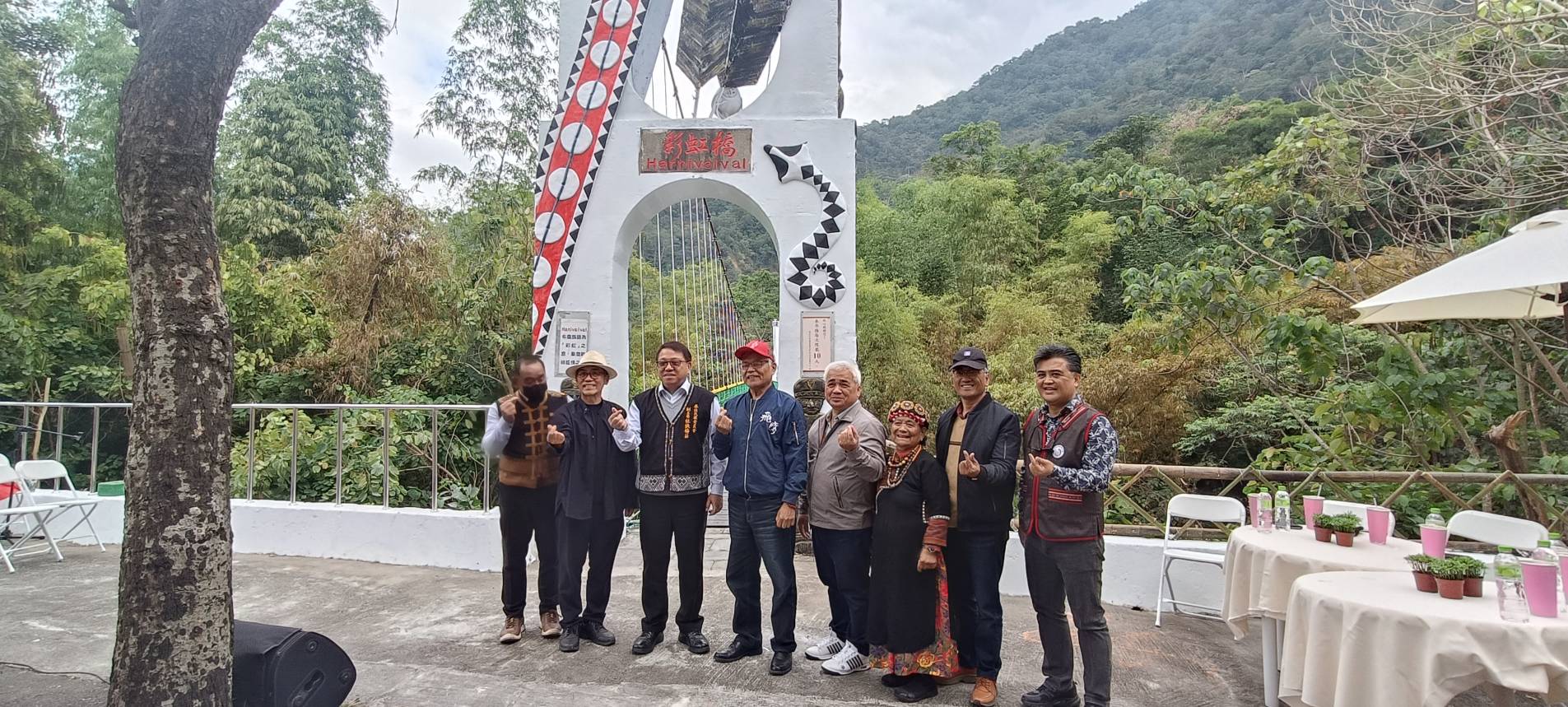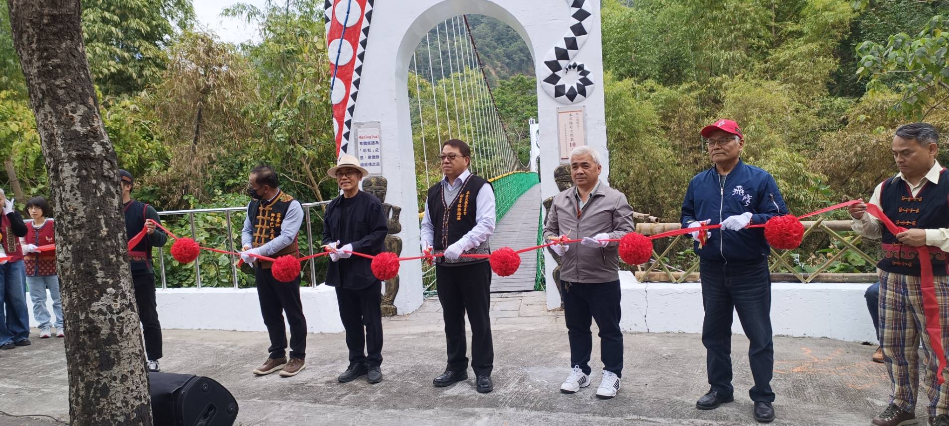 【記者戴英薇/瑪家報導】 原住民族委員會原住民族文化發展中心(以下簡稱原發中心)於今(25)日假原住民族文化園區舉辦「彩虹及觀流吊橋通橋啟用典禮」。在部落耆老的祈福聲中,原住民族委員會副主任委員杜張梅莊、原發中心邱黃肇崇主任,以及三地門鄉鄉長曾有欽、霧台鄉鄉長巴正義、瑪家鄉鄉公所秘書賴萬福等多位貴賓共同剪綵,正式宣布封閉修繕近兩年的一號吊橋(彩虹橋)及二號吊橋(觀流橋)全面恢復通行,趕在農曆春節前為遊客提供更安全、優質的文化體驗場域 。