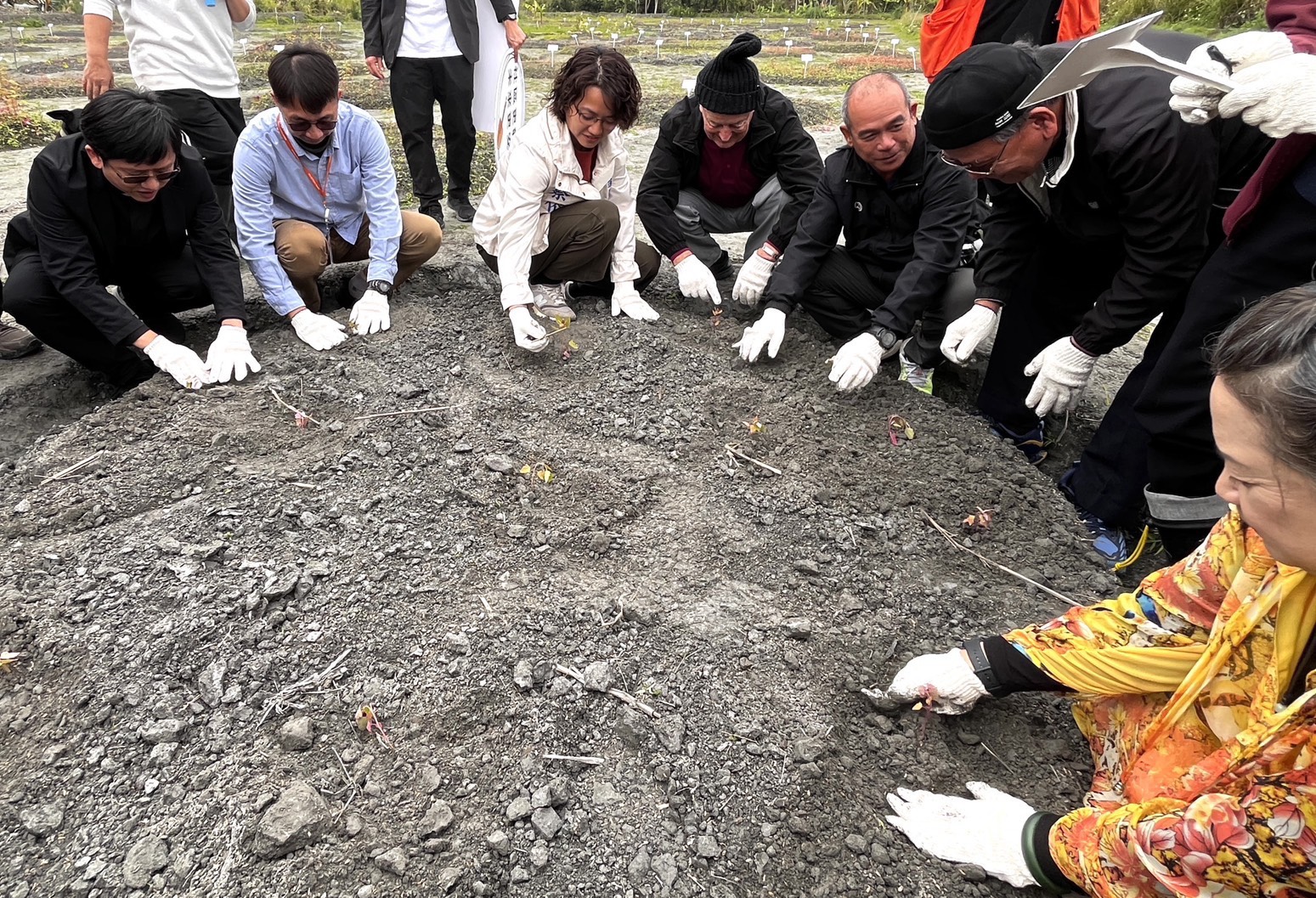 ▲與會人士及在地夥伴於「紅藜田田圈」播下紅藜種子。