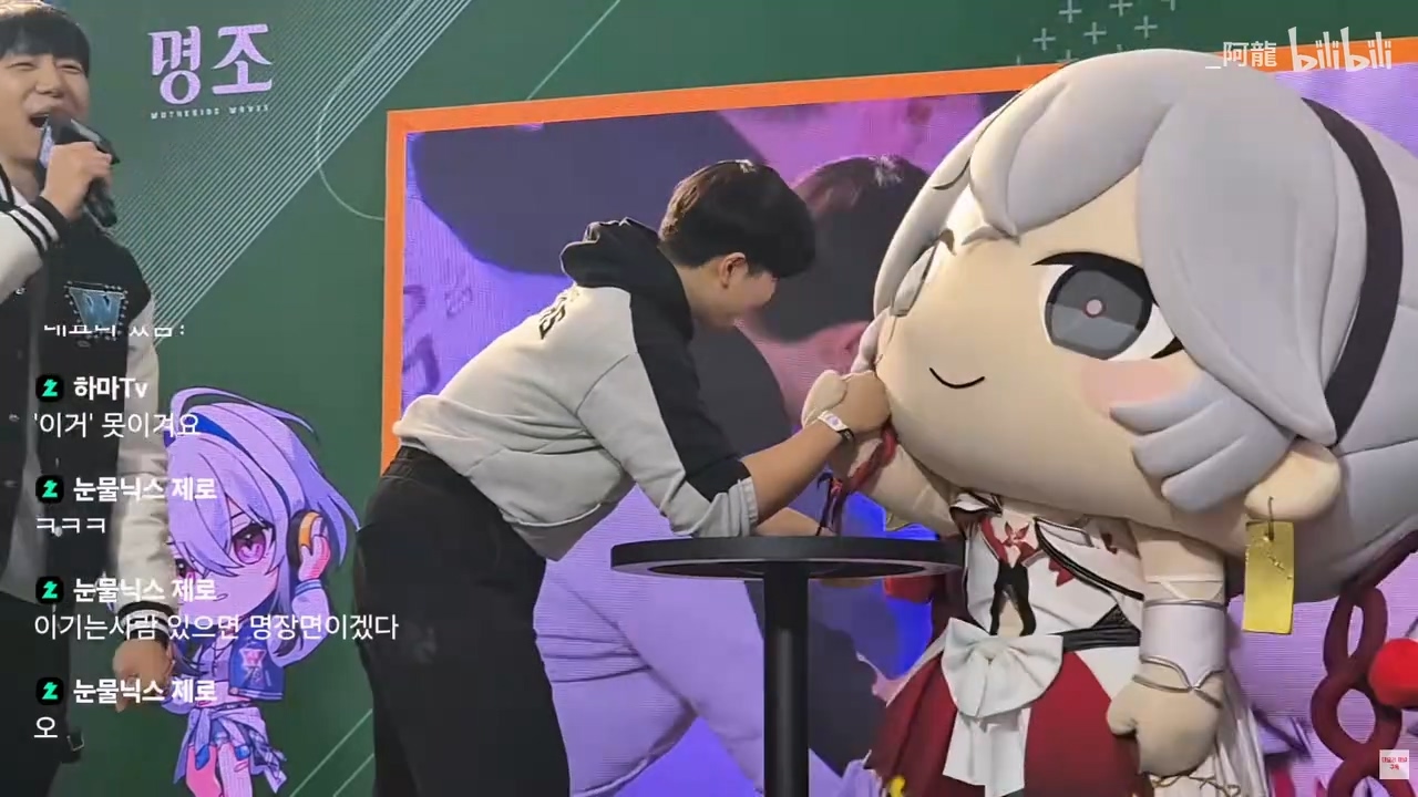 在韓國的《鳴潮》活動中,主辦方舉辦了一場由吉祥物椿與觀眾進行腕力比賽的小活動,結果不小心把觀眾手用骨折了。