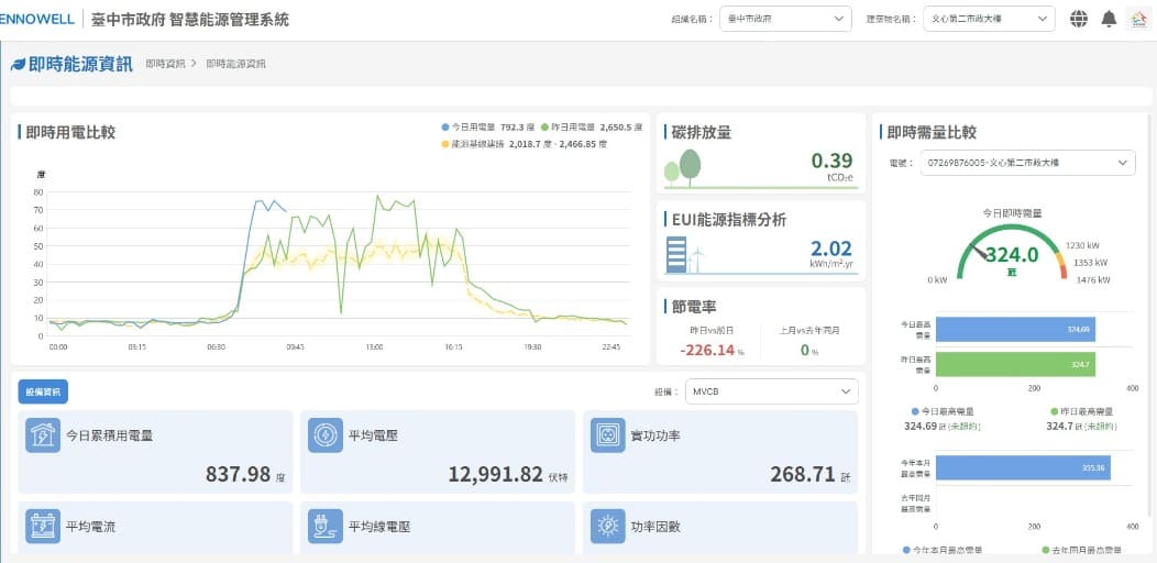 電力監控系統即時監控大樓用電資訊畫面。(圖/台中市政府提供)