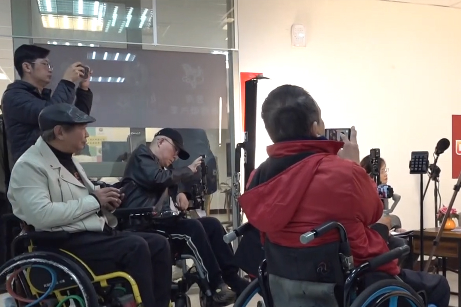 專業的座談式攝影棚裡,主持人和來賓侃侃而談,分享著社會影響力媒體中心的未來展望,而這場棚內錄影的攝影師們都是身障朋友,他們專注地用手機拍攝精彩的每一刻,要將最生動的影像記錄下來。