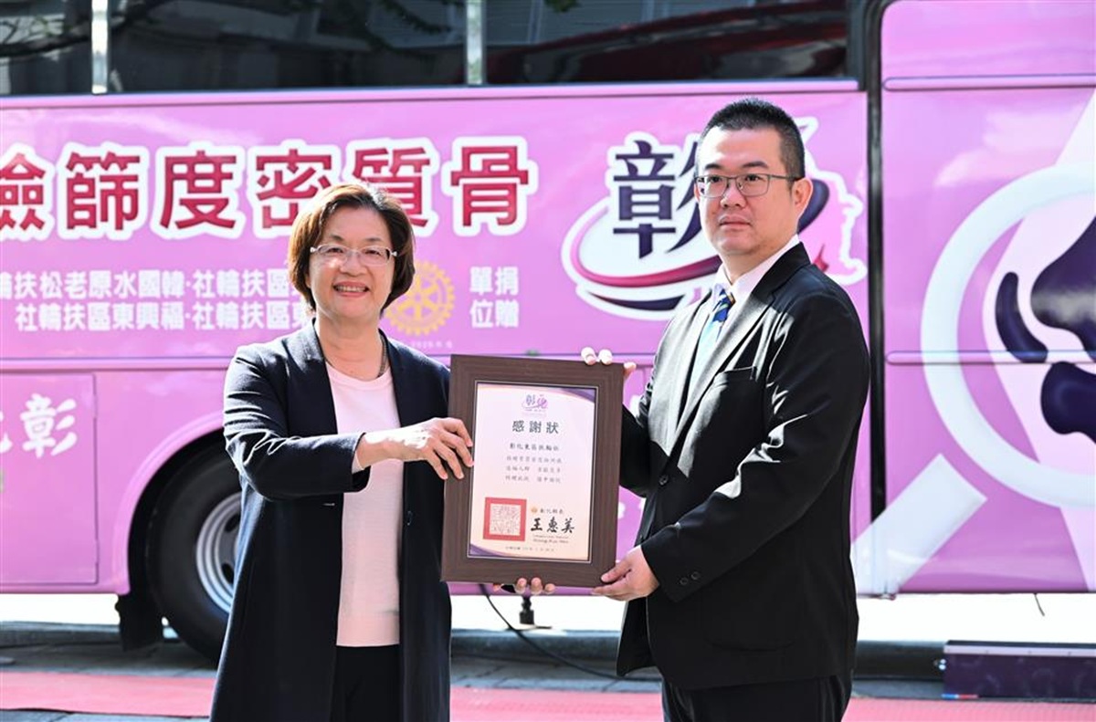 國際扶輪社3462地區前總監楊曜聰表示,感謝王縣長縣府團隊的用心,守護縣民從產檢、幼兒照顧到長輩各項福利。長輩骨質疏鬆問題嚴重,一旦跌倒可能引發內出血等致命風險,未來可以透過檢測車,結合社區「不老健身房」進行數據比對,協助長輩預防骨質流失的各項風險。