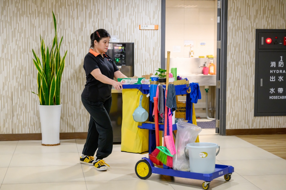 ▲工作中的王玥涵,從曾經需要幫助,到如今能帶領新同事完成任務,展現出穩健的成長步伐。(圖/庇護工場提供)