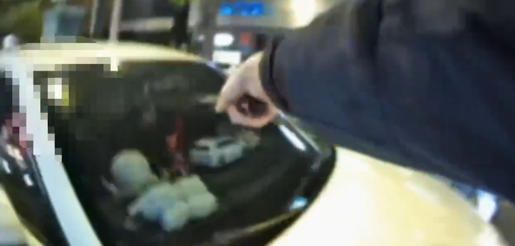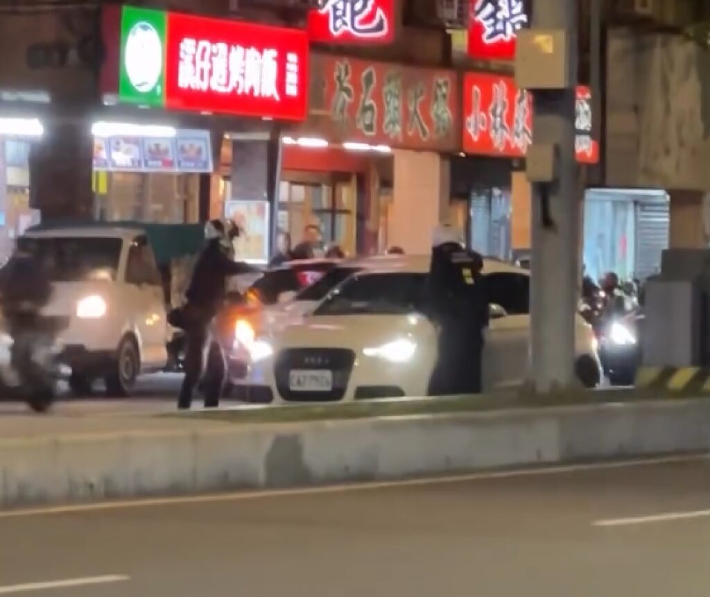 海山分局員警攔下自小客車用警棍敲打車窗喝令駕駛下車,但該車隨即加速逃逸。翻攝畫面