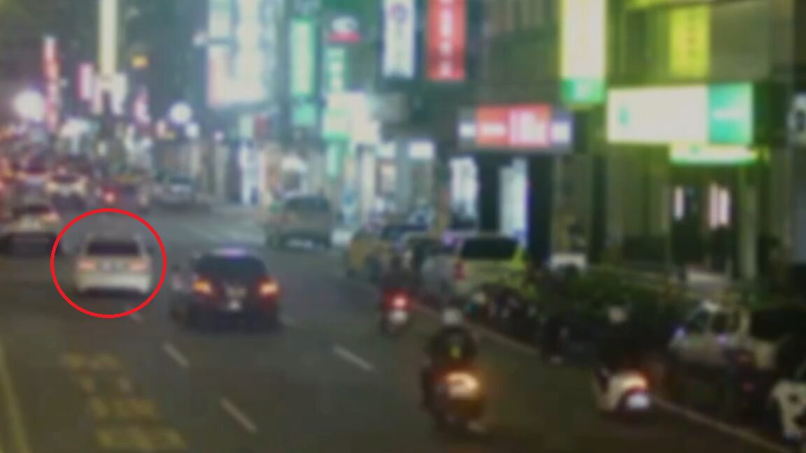員警追捕拒檢自小客車(紅圈處)。翻攝畫面