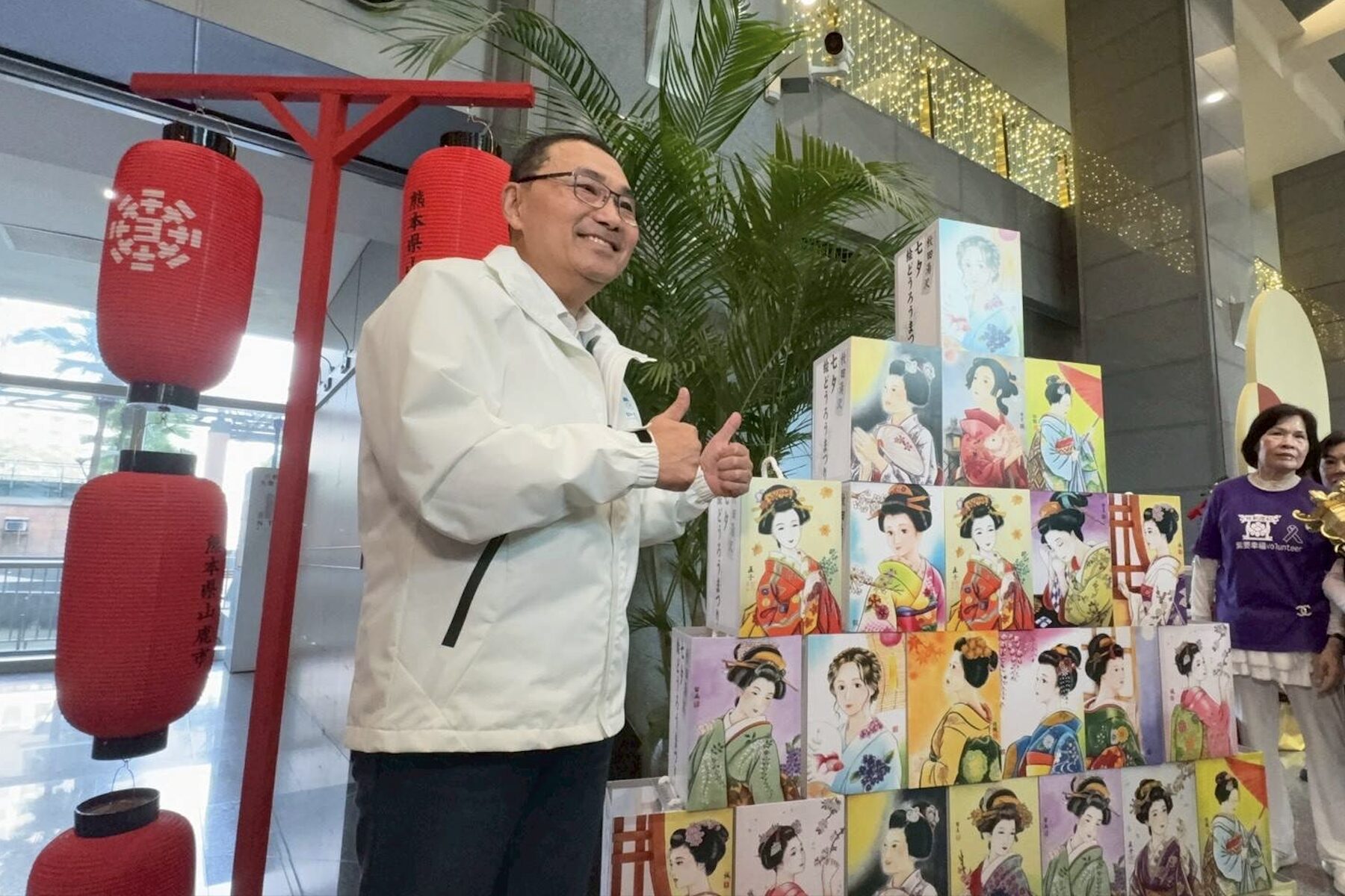 ▲侯友宜與日本燈區合影。(圖/新北市民政局 提供)