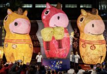 本次記者會平溪場3盞20呎高馬年特色大型天燈主燈,首次至板橋都會區巿民廣場現身亮相,現場可以看到3盞20呎高的福馬天燈合體聚首曝光,其中金色福馬代表財富、紅色福馬代表福氣,橘色福馬代表大吉大利,三馬組合「驫」,寓意「馬驫奔騰,邁向成功」;氣勢磅礡及福氣十足的3盞巨型馬型天燈,搭配新北巿騎警隊的4匹駿馬象徵馬到成功,也為馬年祈福拜早年。值得一提的是,在3/3(二)十分場將有2盞20呎高的「龍馬」雙神獸主燈,代表「龍馬精神,活力新北」也將展出升空,也請大家拭目以待。