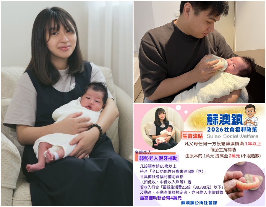 蘇澳鎮社福政策祭出利多!生育津貼由1萬元增至每胎2萬元;65歲以上經濟弱勢長者,裝置全口假牙最高補助4萬元。鎮長李明哲強調,鎮公所將透過各項福利政策,營造友善育兒環境並守護長者口腔健康與生活品質,讓蘇澳成為深具人情與溫度的宜居城鎮。