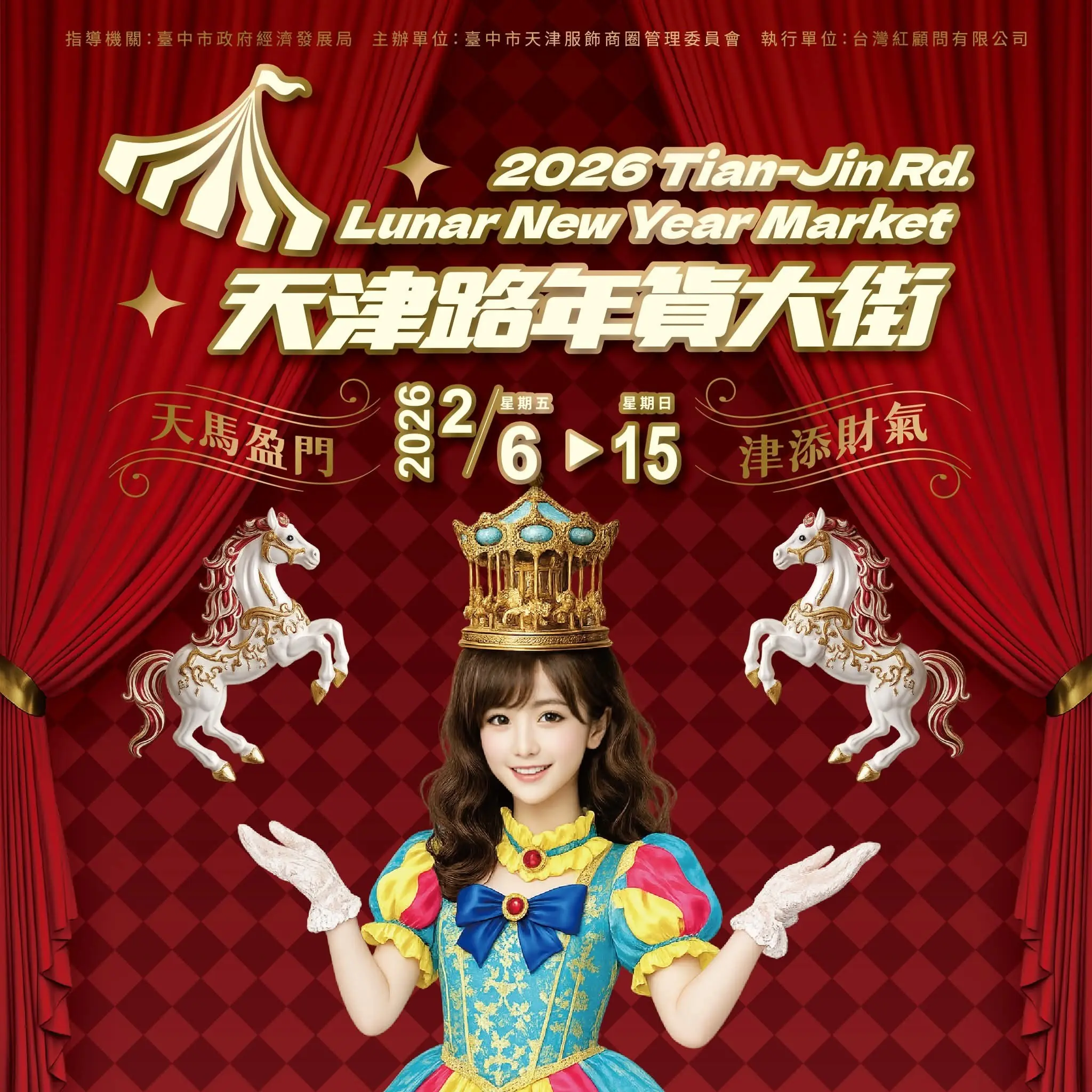 被譽為「台中五分埔」的天津路服飾商圈,將於 2 月 6 日至 15 日 盛大舉辦「2026 天津路年貨大街」,今年以「天馬迎門.津添財氣」為主題,結合百萬抽獎、限定紅包與綠能行動,展現傳統商圈在產官合作下推動數位轉型與永續發展的成果,邀請民眾走春採買、迎接馬年好運。