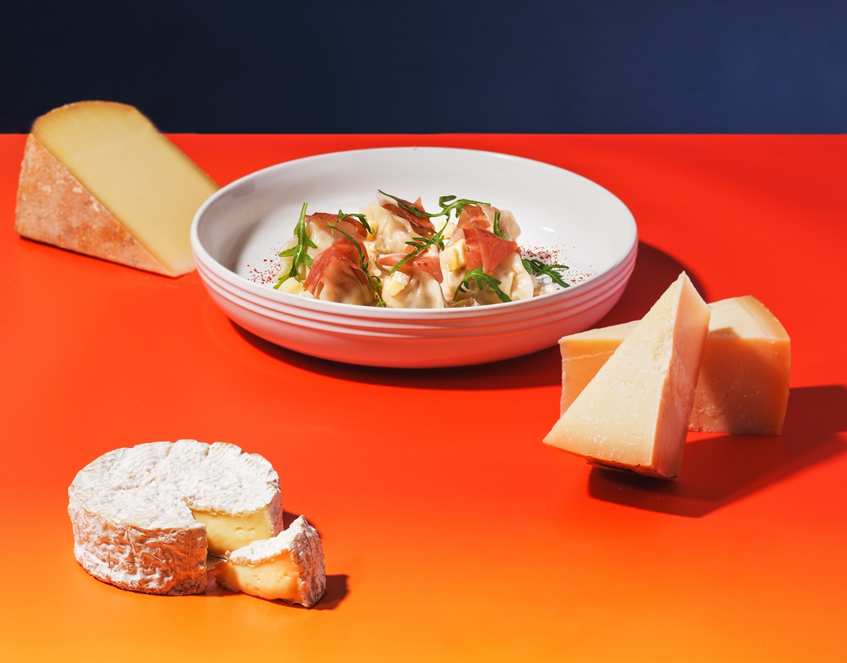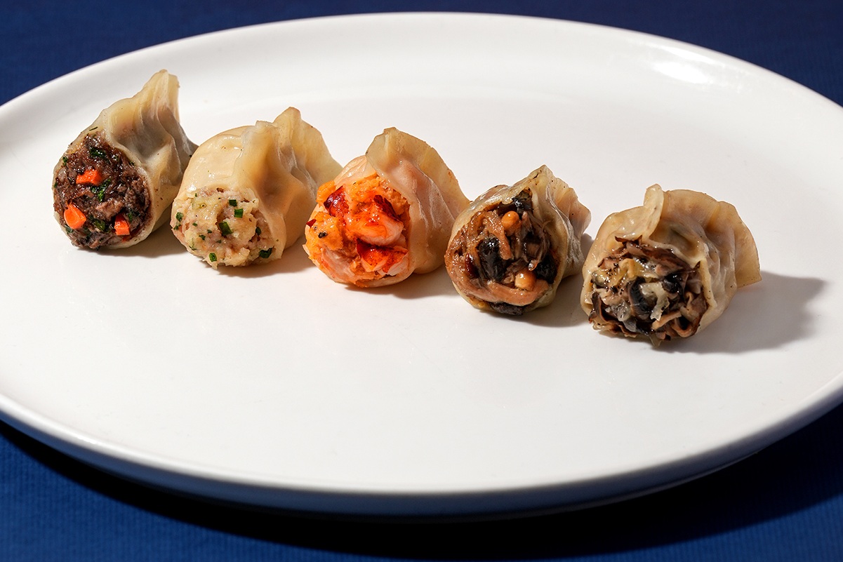 五款餃子分別以法國產區命名:「Burgundy」紅酒燉牛取材自經典勃根地燉牛肉,搭配濃厚洋蔥紅酒醬;「Bretagne」龍蝦烏魚子內餡彈牙鮮美,結合龍蝦湯底與檸檬香氣;「Paris」松露蕈菇餃以多款菇類堆疊細膩口感,展現巴黎式優雅;「Gascony」油封鴨餃重構經典法菜,揉合五味香料與梅子果香;「Jura」起司豬餃則以康堤與卡門貝爾起司交織濃郁風味,視覺與味覺同樣吸睛。