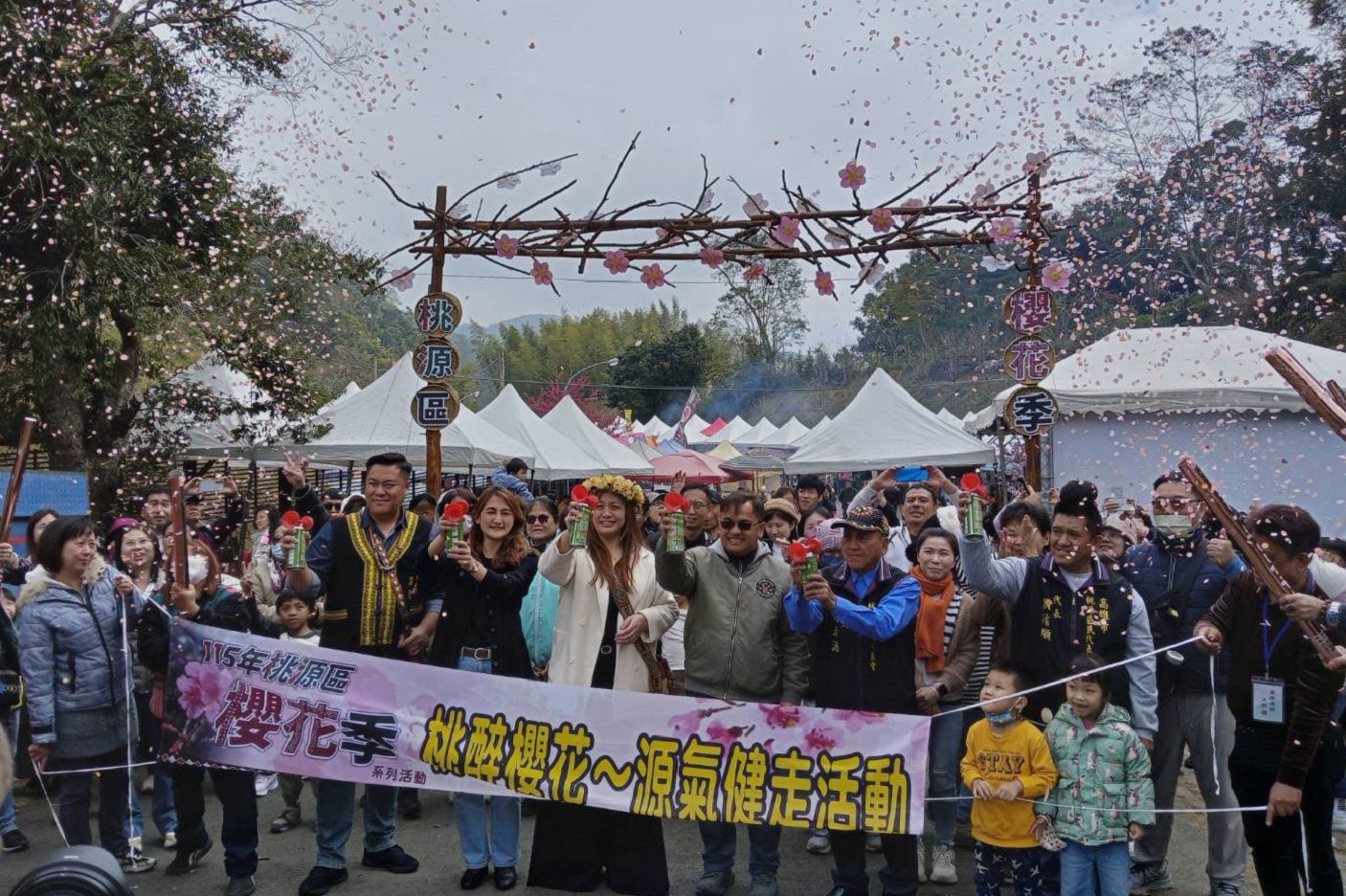 桃源區長杜司偉指出,桃源櫻花公園每年固定舉辦櫻花季,已成為地方重要品牌活動。今年園區以河津櫻為主軸,並搭配吉野櫻、粉紅佳人以及台灣原生種山櫻花,多樣花種交錯綻放,讓遊客在不同角度都能欣賞到層次豐富的櫻花景觀。