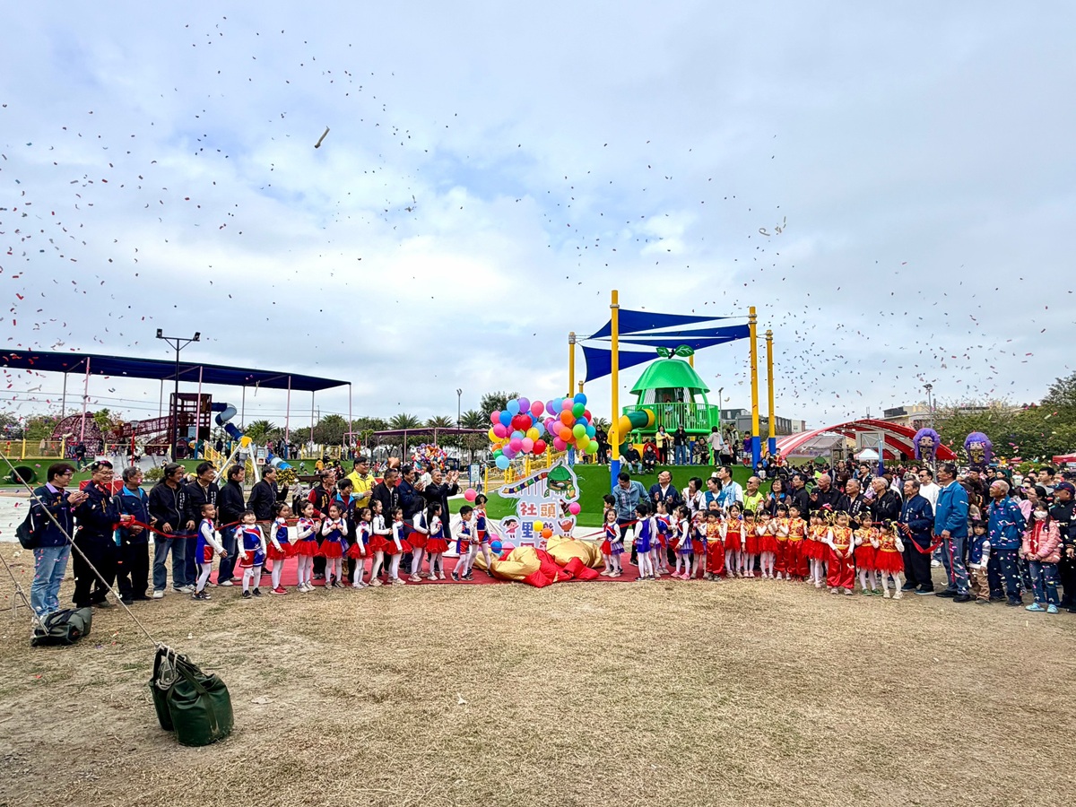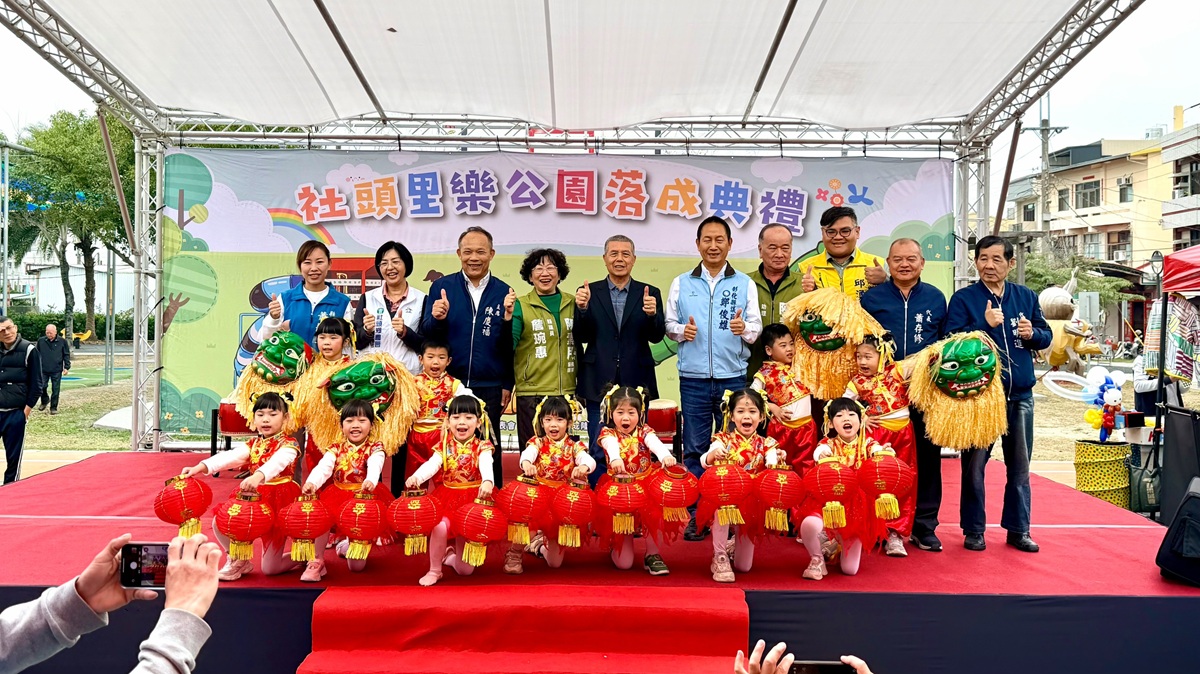 社頭鄉第一座大型共融式親子公園,歷經三階段分期施作,最後一塊拼圖的芭樂造型遊具完工,社頭鄉公所於今(31)日上午9時於「社頭里樂公園」隆重舉行落成啟用典禮,活動現場邀集社頭鄉民代表會、社頭鄉農會、各村長及社區團體共襄盛舉,一起開啟「芭樂造型遊具」禮物盒,象徵送給社頭小朋友一份新的遊具禮物,並邀請YOYO家族-南瓜哥哥、草莓姐姐、哈利小丑演出與大家同樂,配合農曆春節將至,還有書法老師現場寫一字小春聯,陪伴大小朋友度過美好周末假期。
