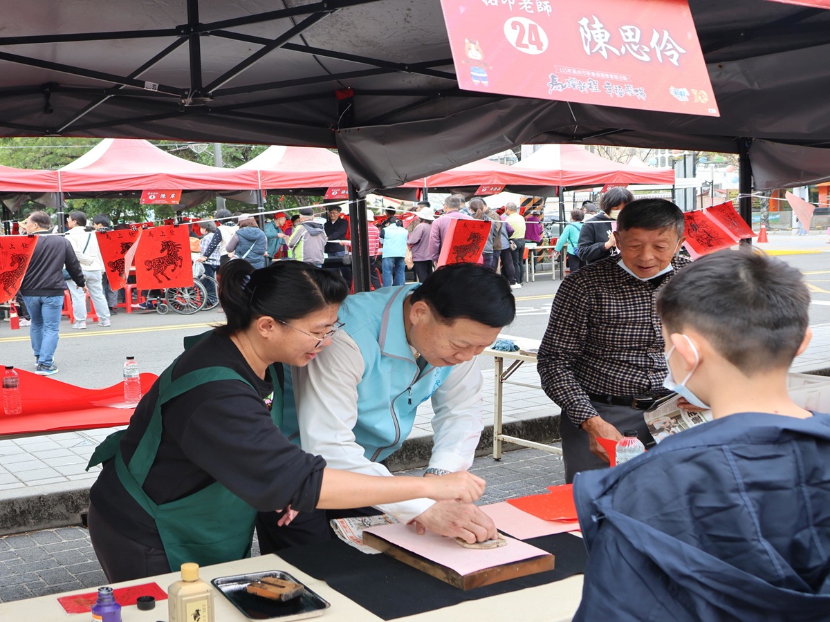 一早就感受到鄉親的熱情,聚集近千名民眾排隊領取號碼牌,本次共計邀請 20 位書法名家親臨揮毫,同時特別邀請年畫拓印專家溫文卿老師,以及畫家江慶章老師及各藝術家在現場親手製作版畫及彩繪,將祝福與美傳遞到民眾手中。