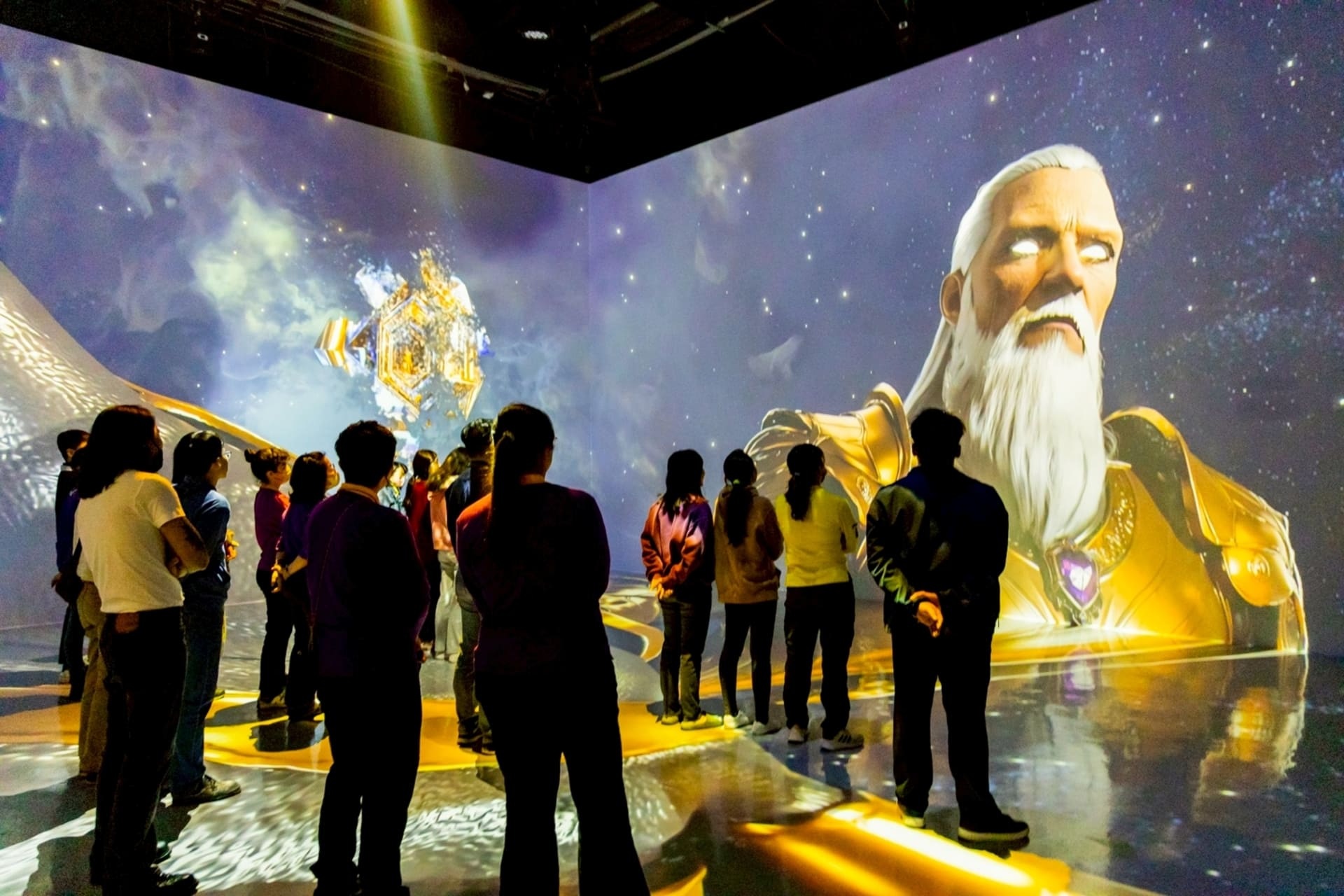 踏入劇場瞬間,來自前、後、左、右與地面等5面720度的投影瞬間包圍,搭配聲光效果與多層次感官刺激,讓故事從平面畫面升級為「親身參與」的沉浸式體驗,展現 Unreal Engine 5 與 AIGC 技術融合下的全新娛樂型態。