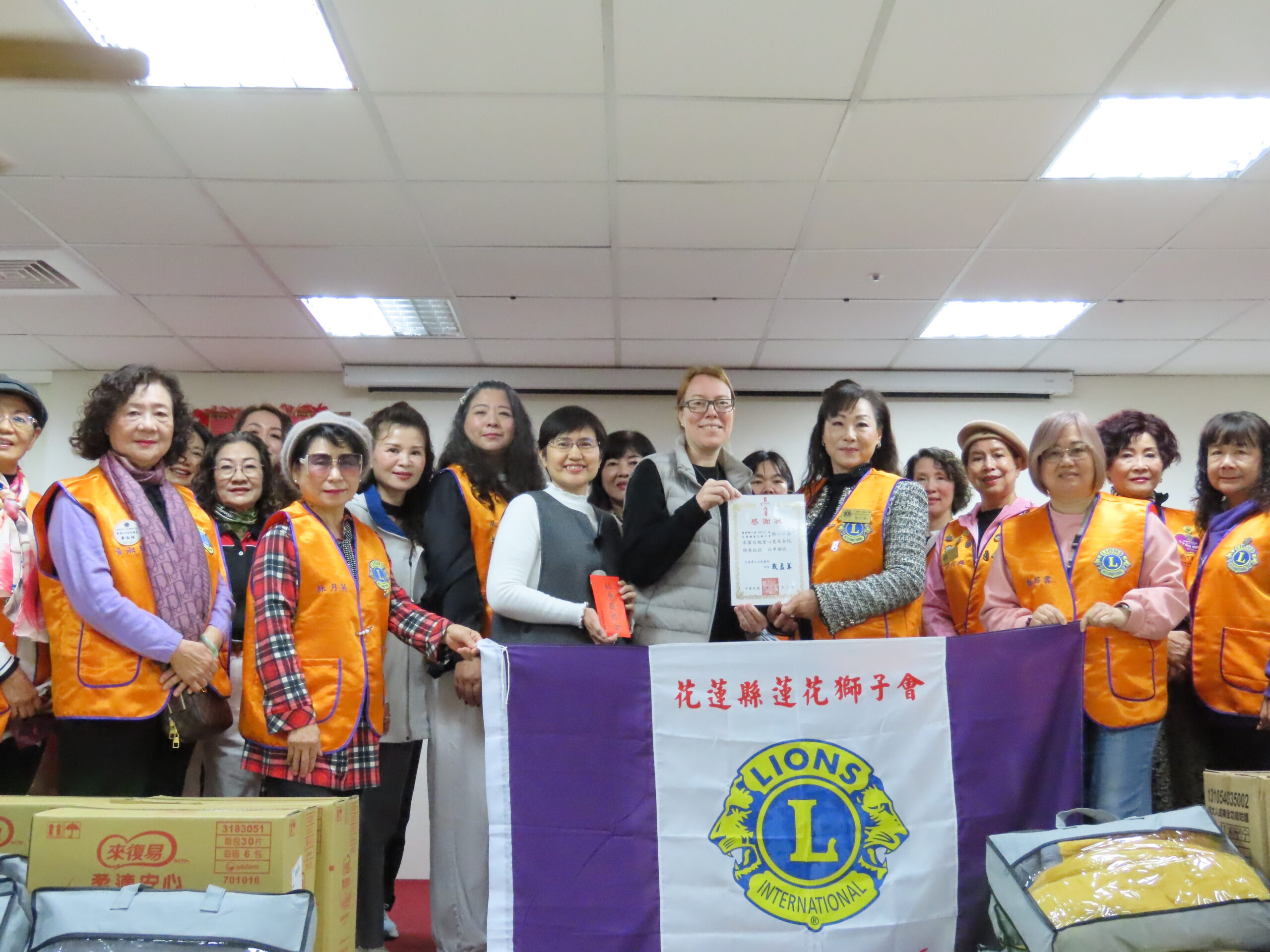 花蓮縣蓮花國際獅子會繼一月捐贈尿布與愛心款項後,農曆年前再度走進花蓮畢士大教養院,致贈善款與新鮮漁貨,寒冬送暖、義舉可風。