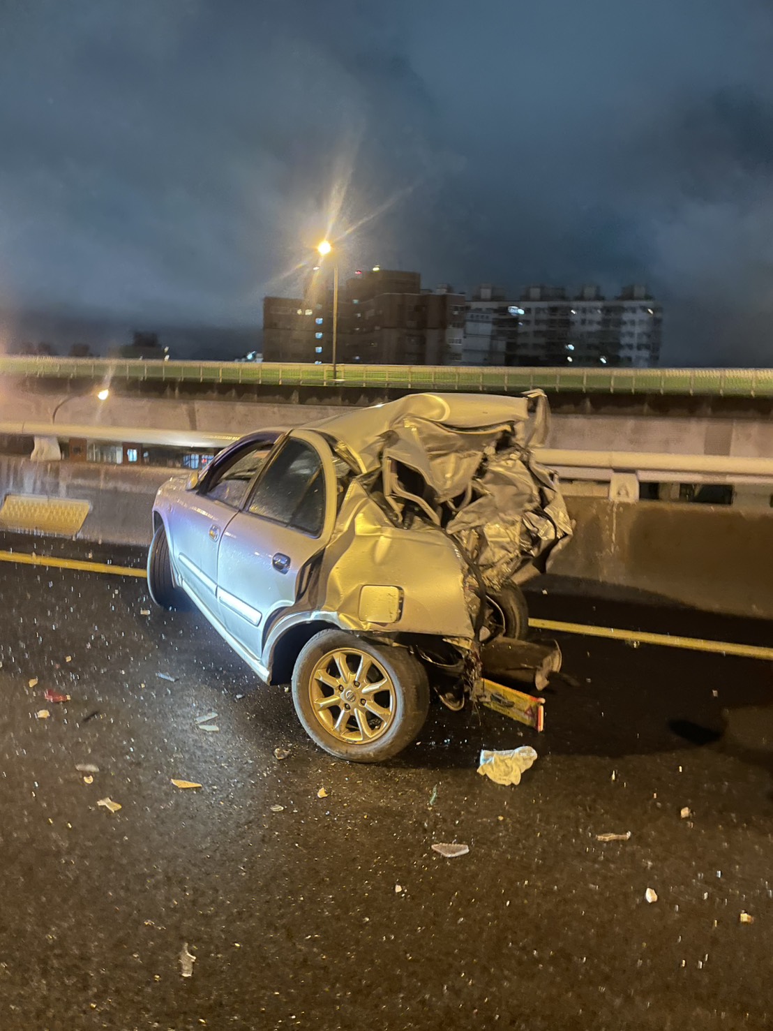 國道警察第一大隊表示,2月2日4時44分接獲新北市110通報,國道1號汐五高架道北向27.9公里三重路段有事故,員警到場查知,46歲賴姓男子駕駛小客貨車行經汐五高架道北向27.9公里三重路段,疑似未注意車前狀況,撞擊前方61歲陳姓男子駕駛的小客車,導致陳男車輛被撞擊至內側車道。